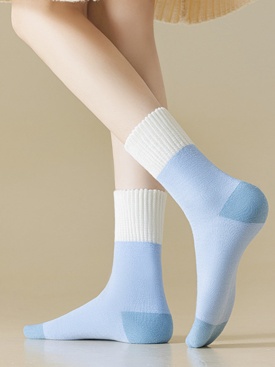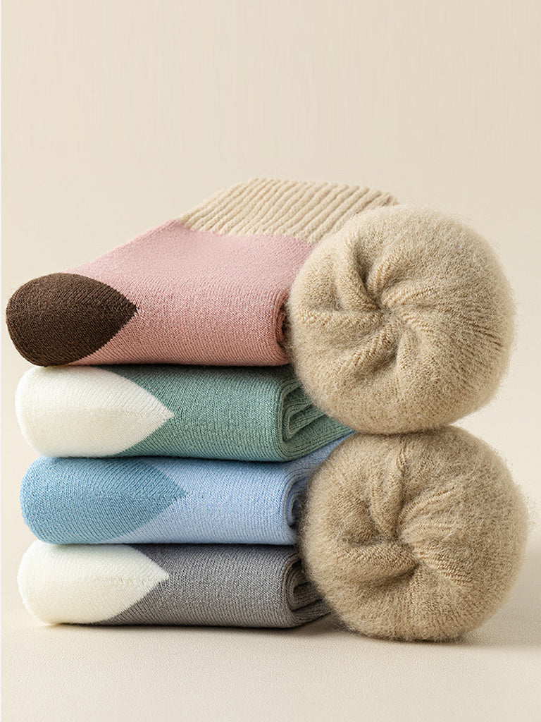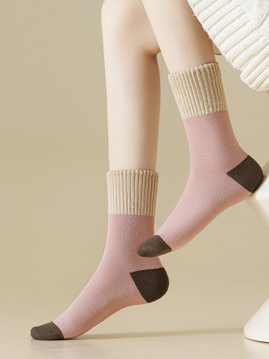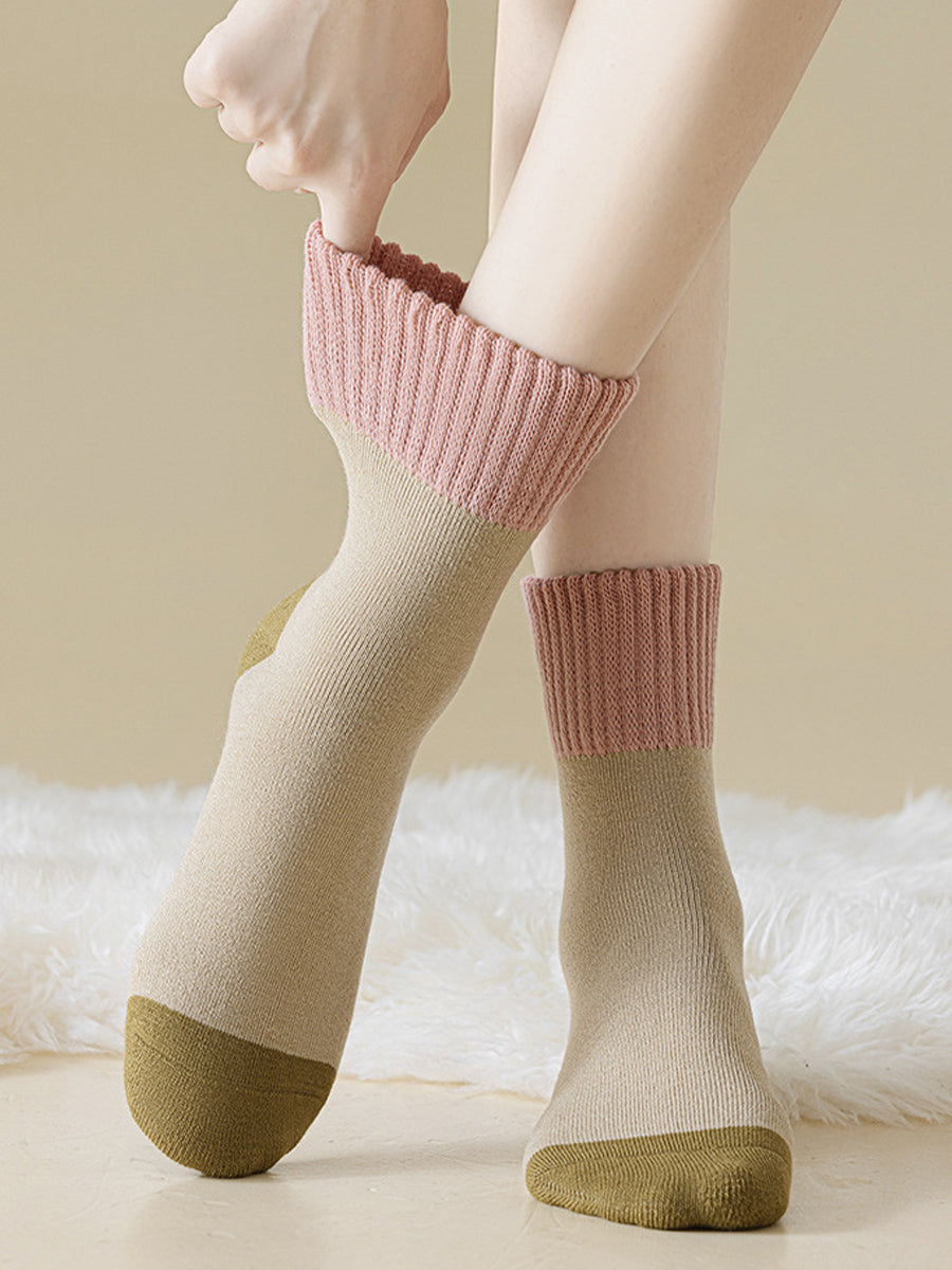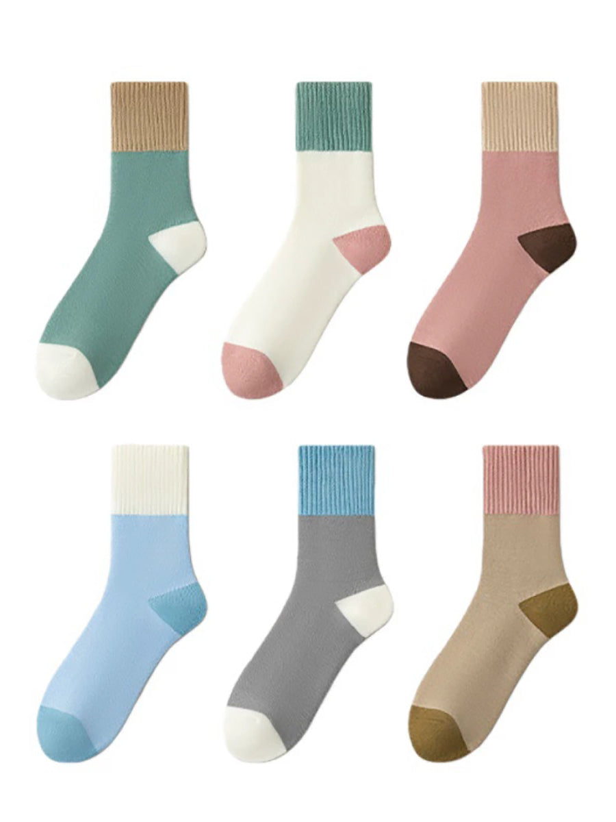 6 par tykke sokker med kunstnerisk fargeblokkdesign for kvinner