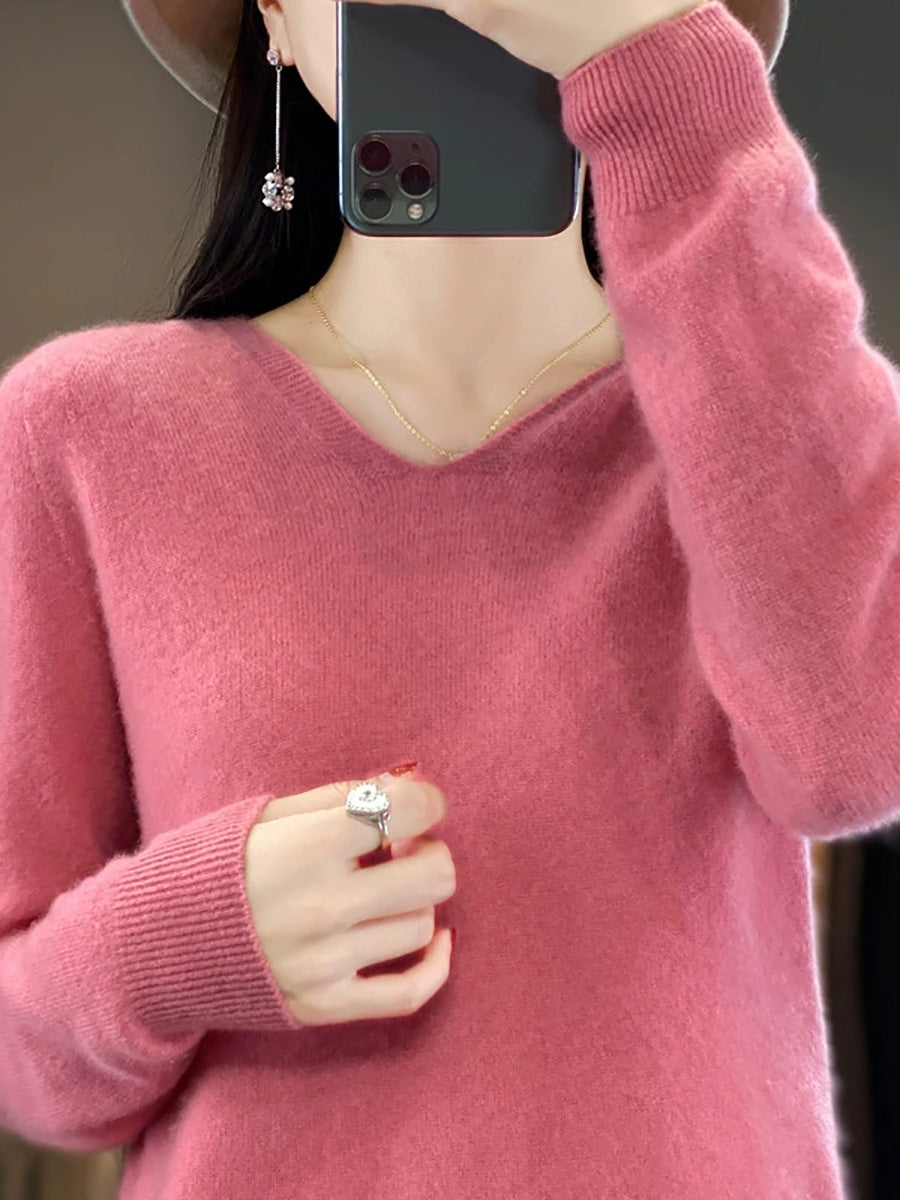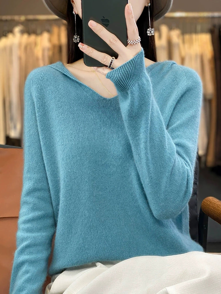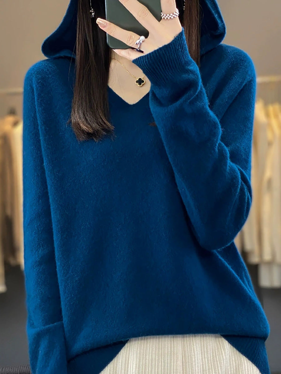 Damehøst Uformell Ren Farge Strikket Hettegenser