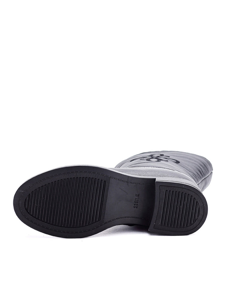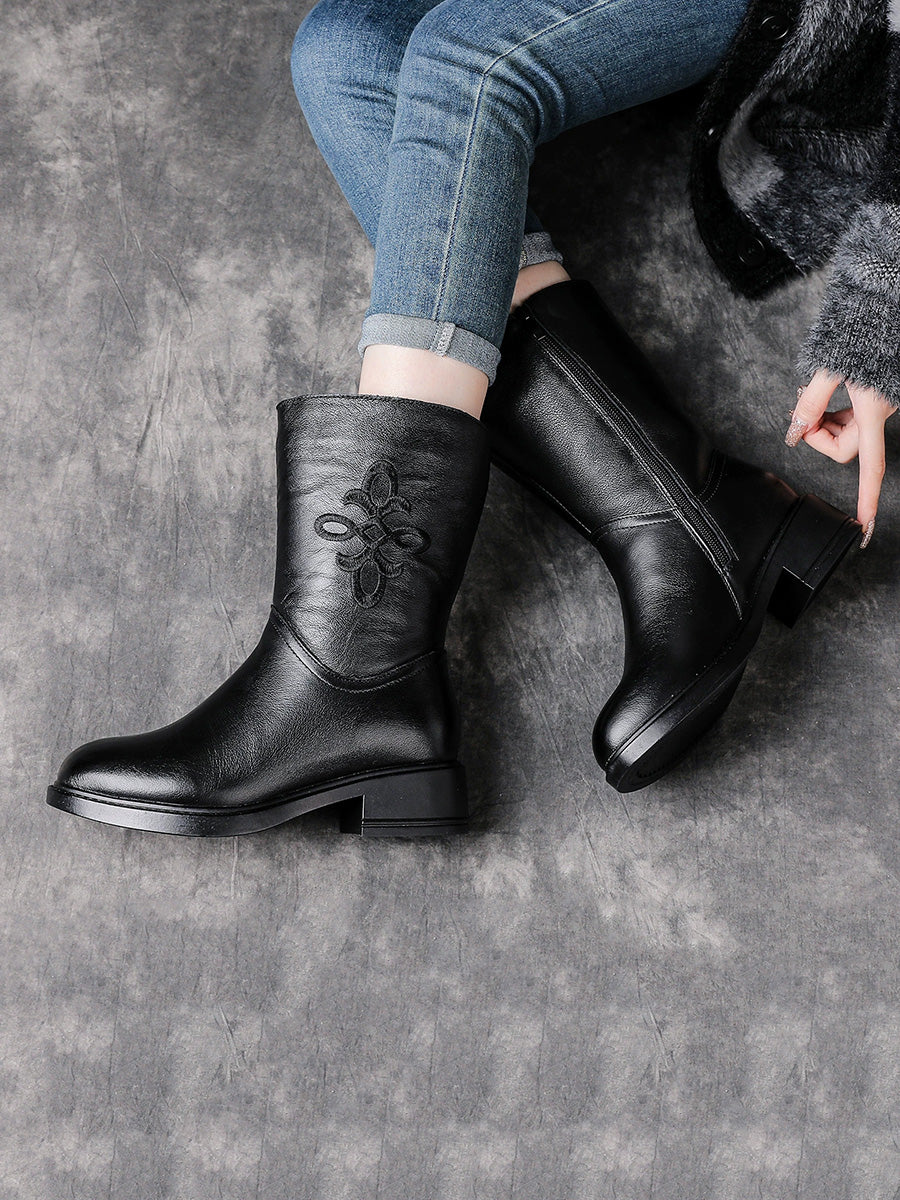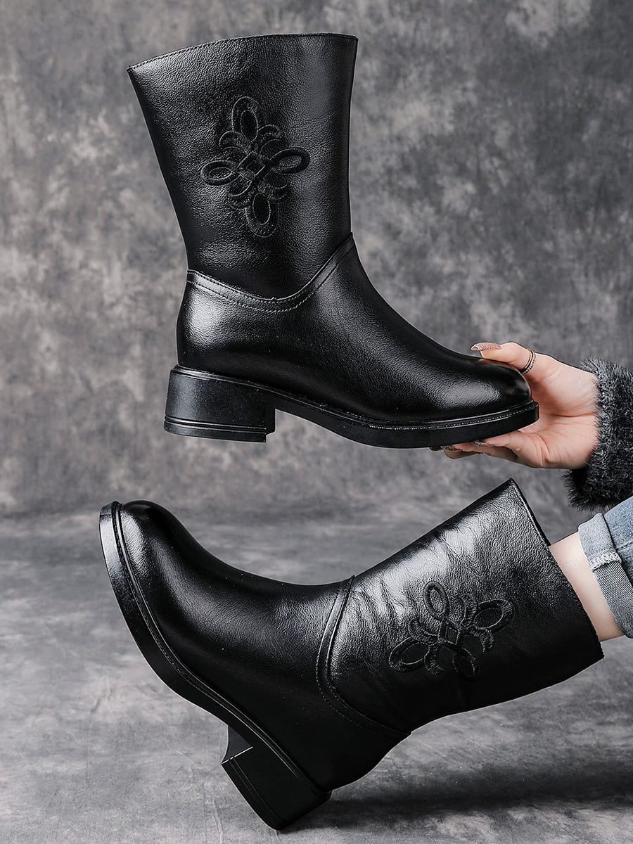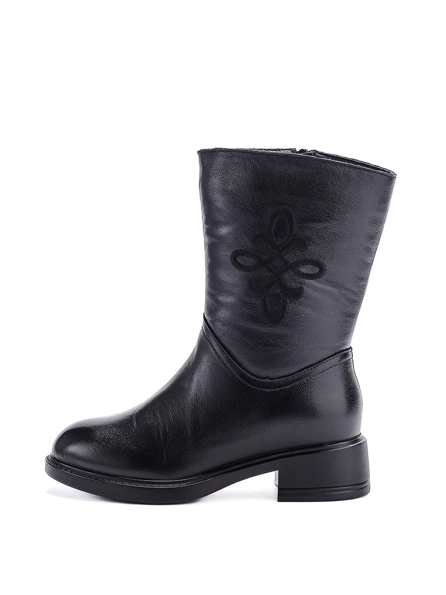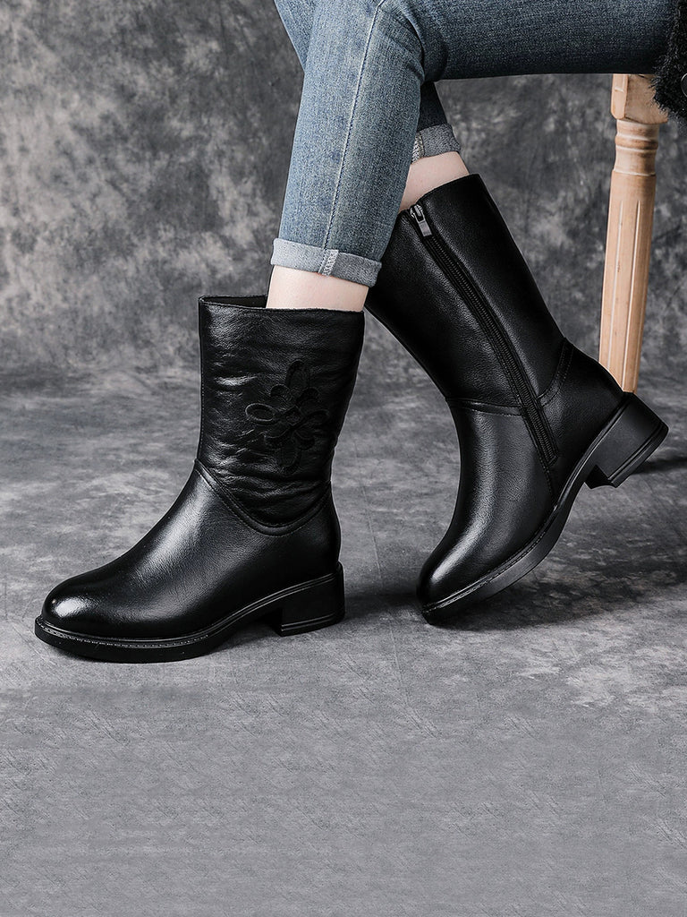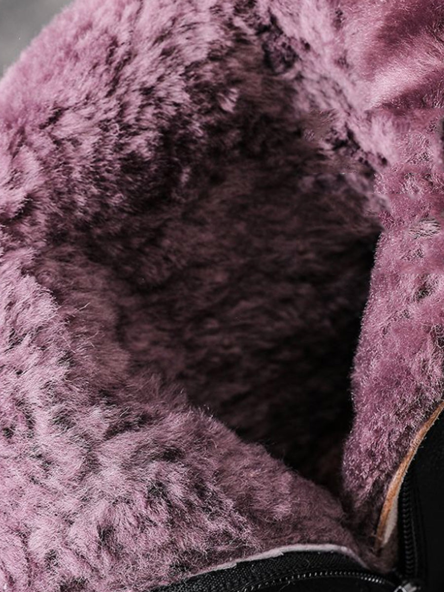 Dame vinterstøvler med fleecefor og mellomhøy hæl i ekte skinn
