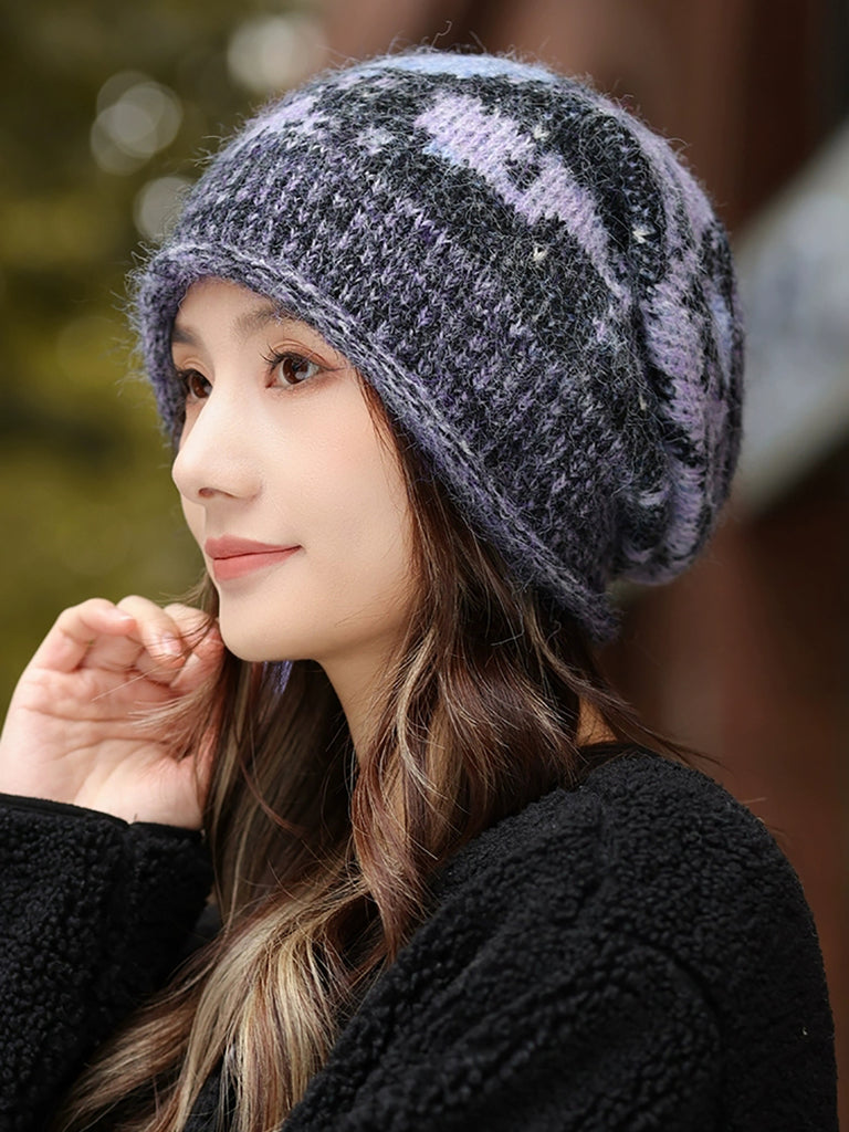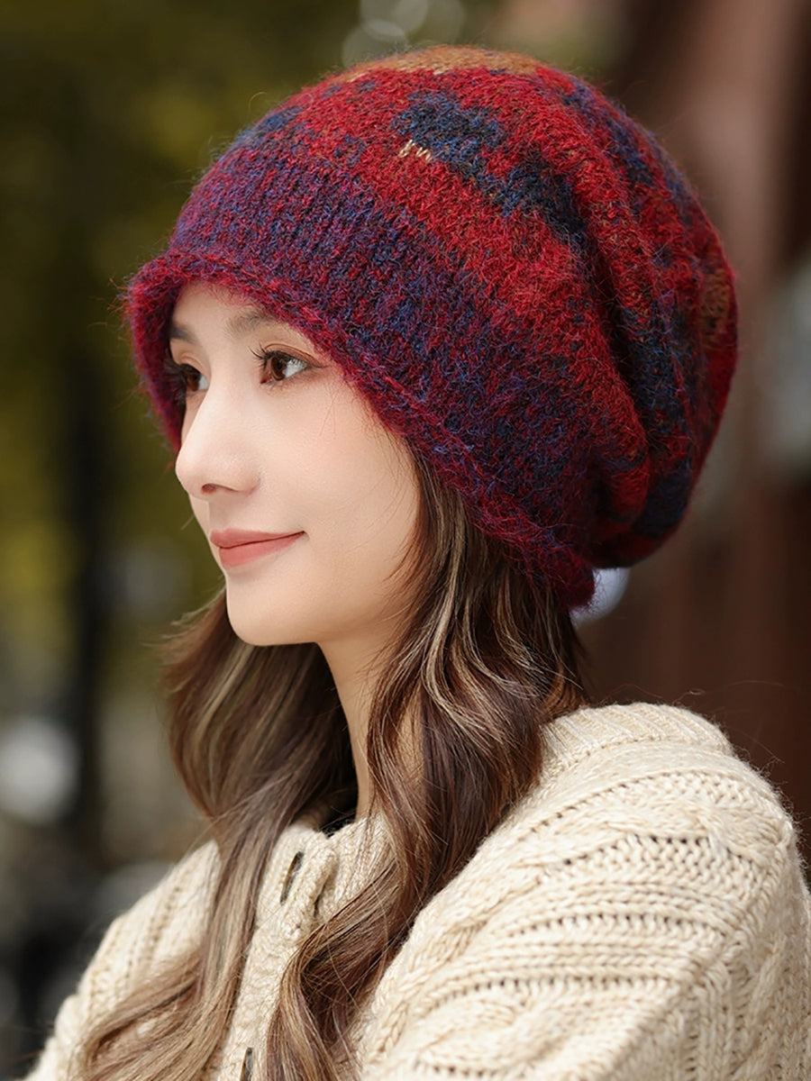 Vintervarm, kunstnerisk, myk strikket lue i blandede farger