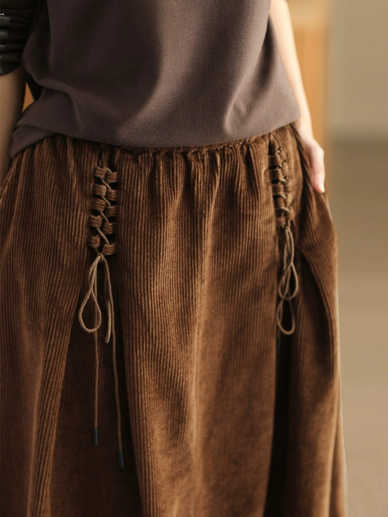 Dame Høst Retro Stroppe Corduroy A-formet Skjørt