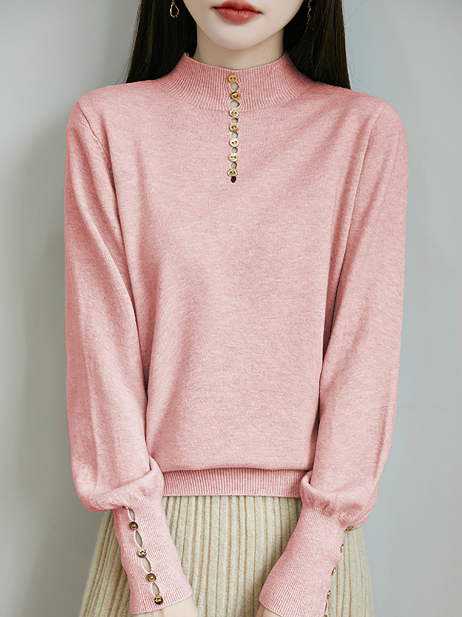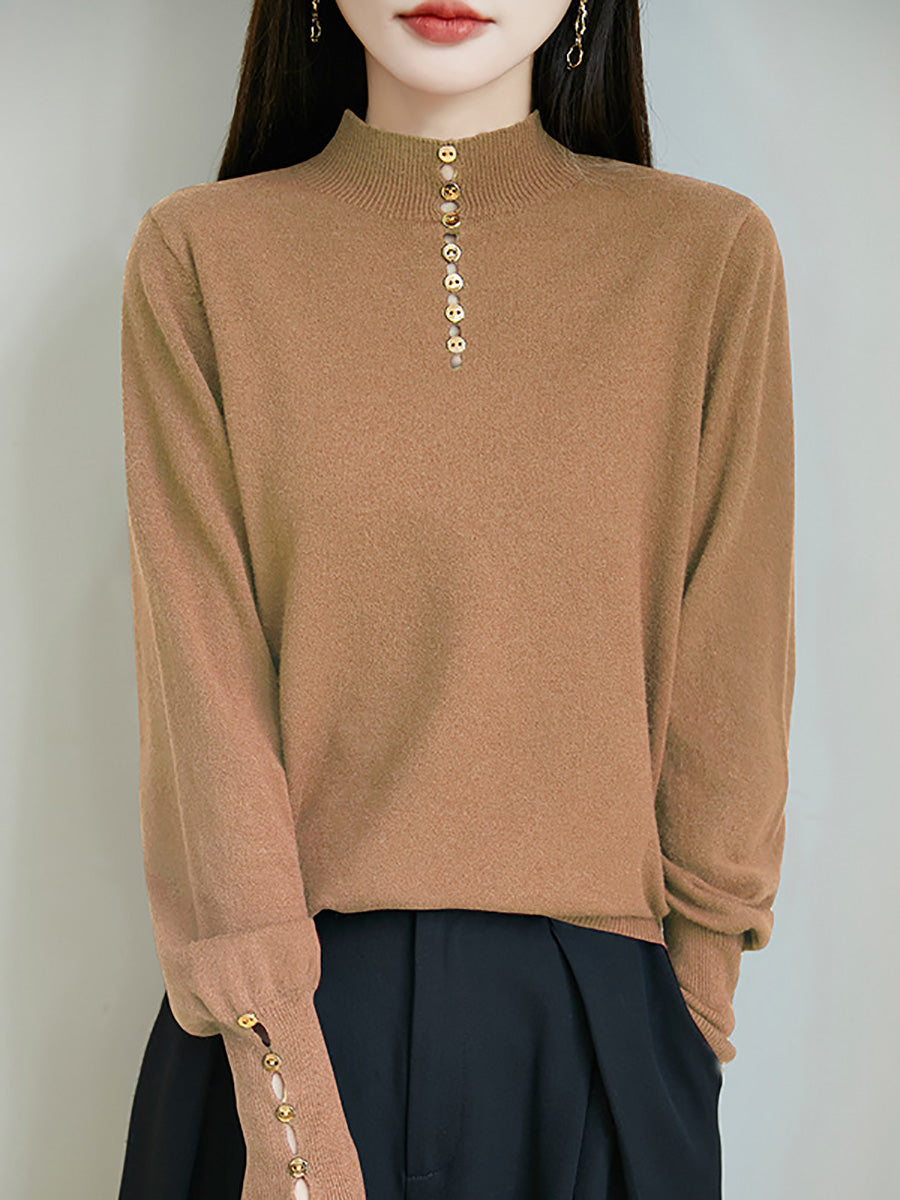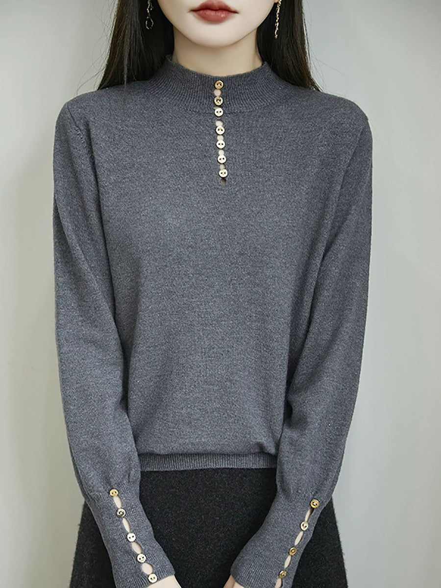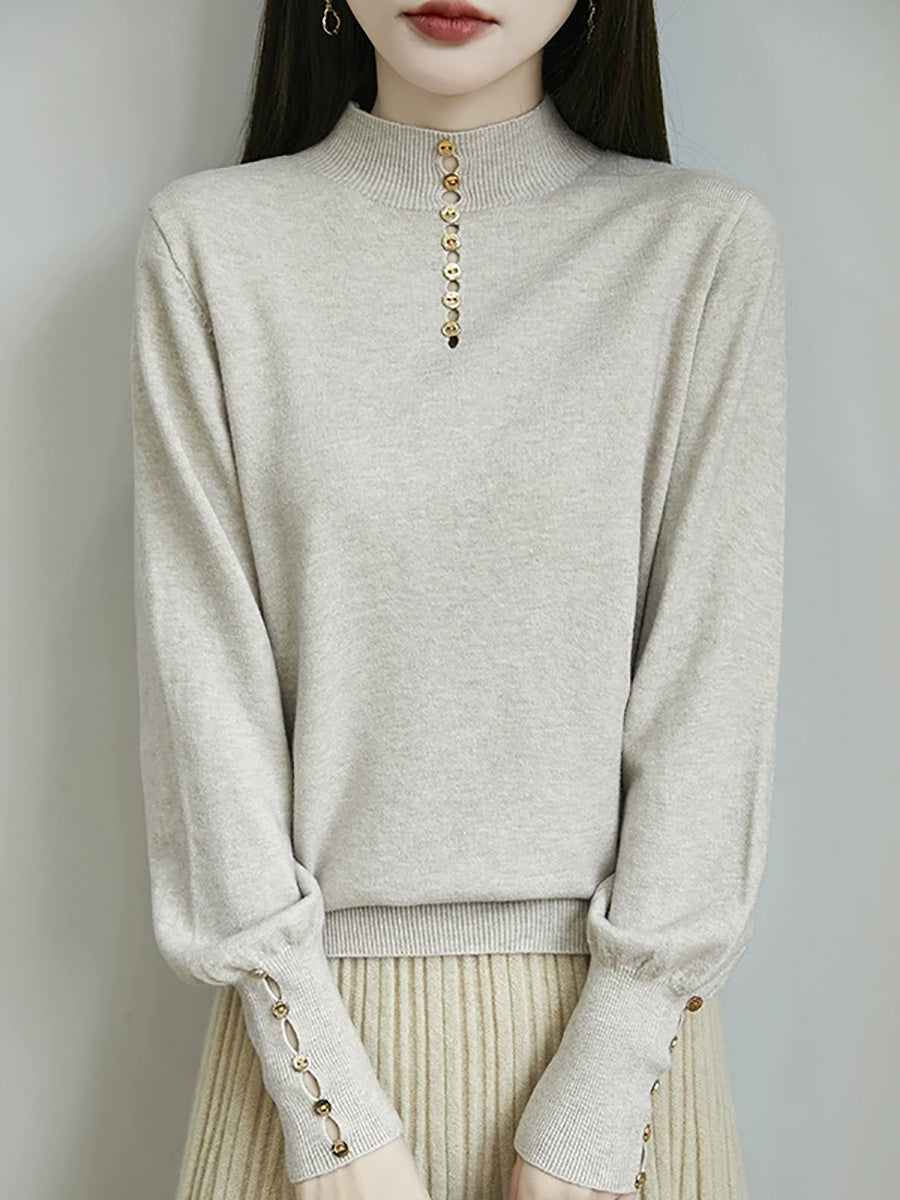 Kunstnerisk genser med knapper og høy hals fra dame, høst