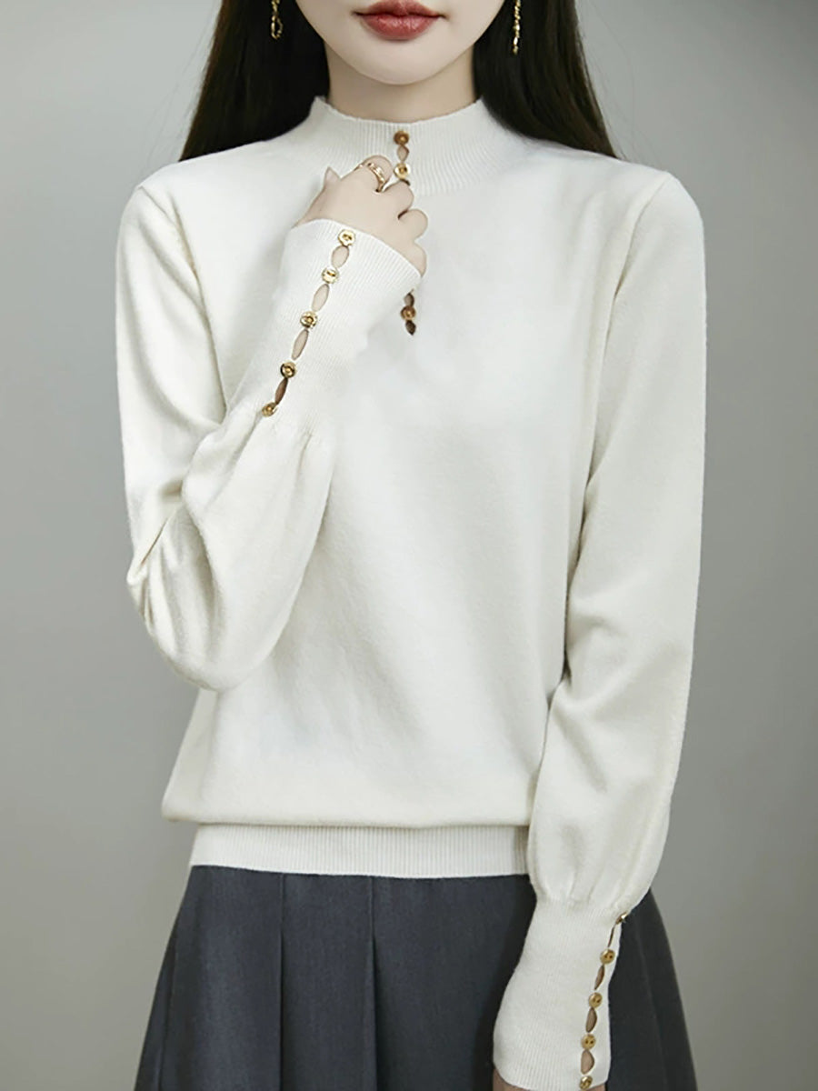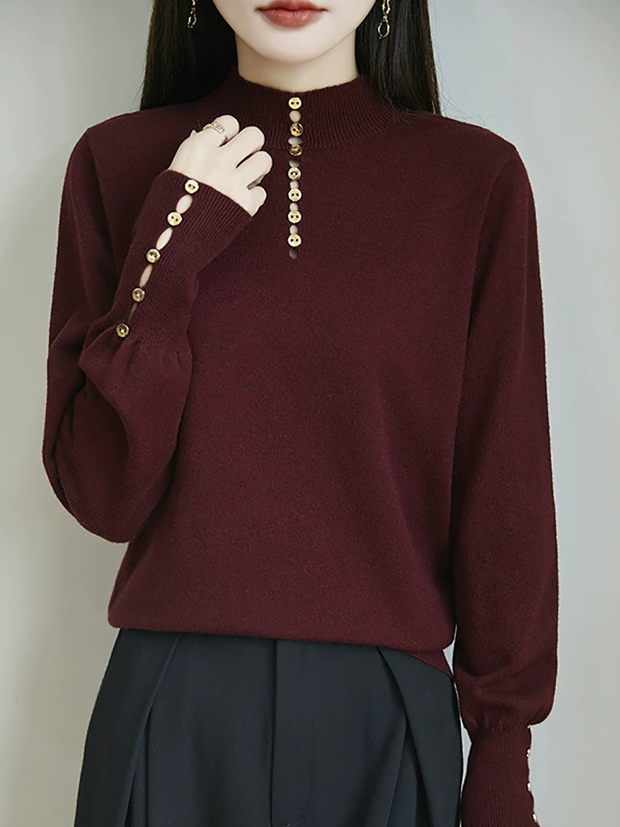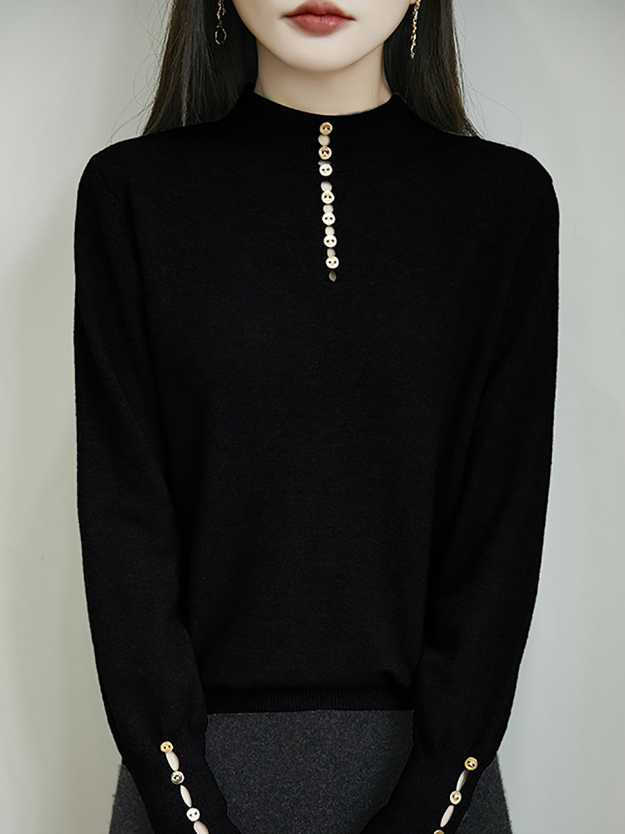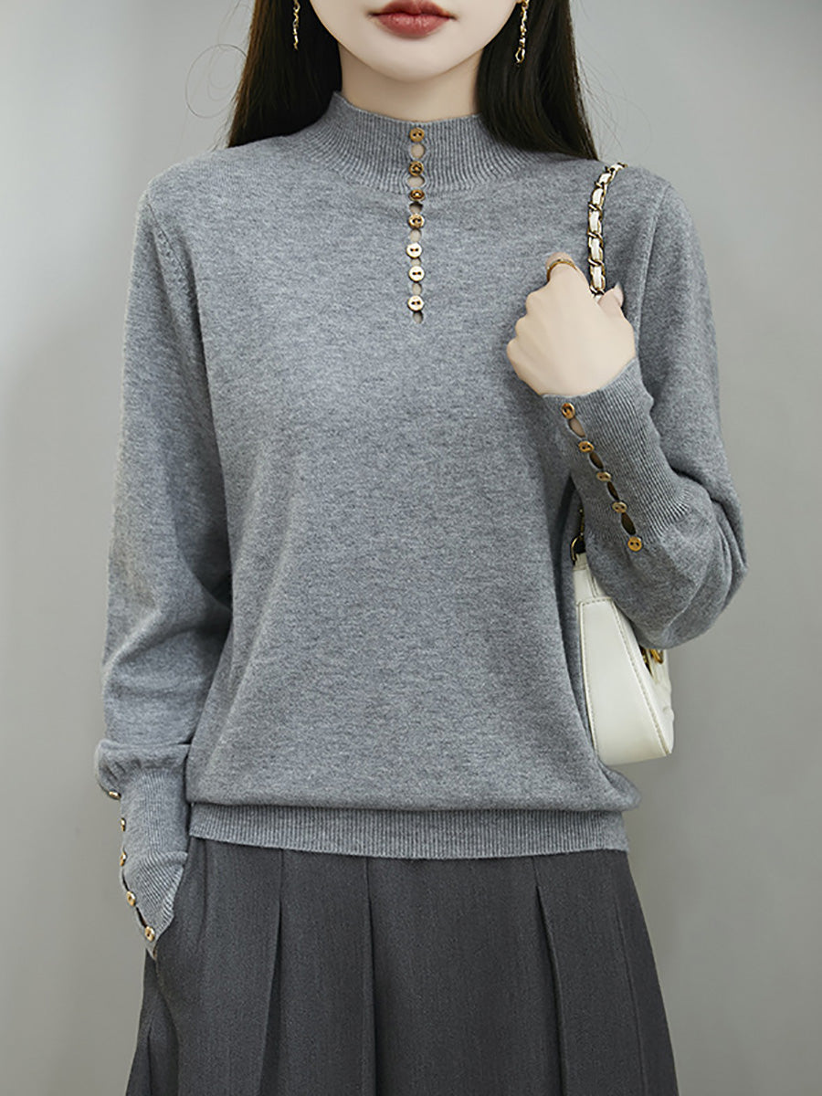 Kunstnerisk genser med knapper og høy hals fra dame, høst