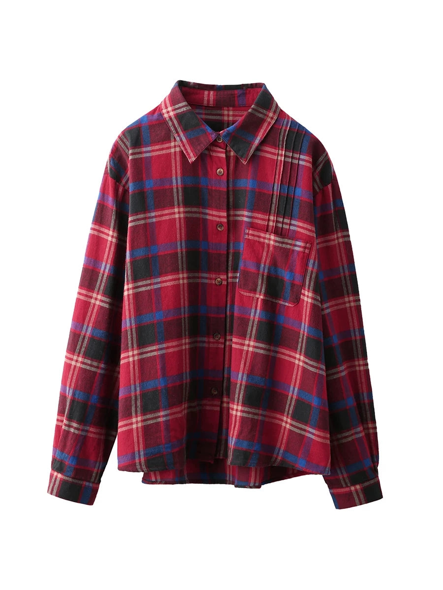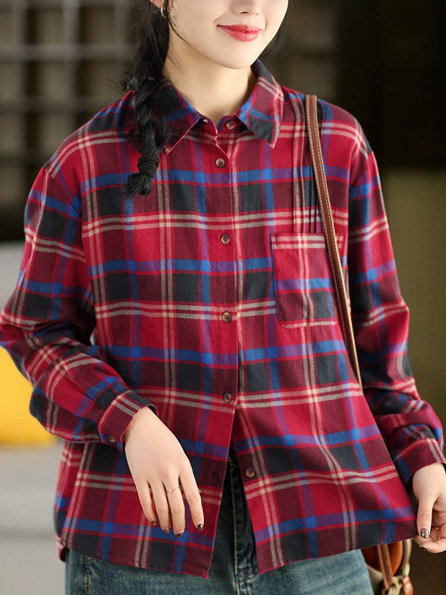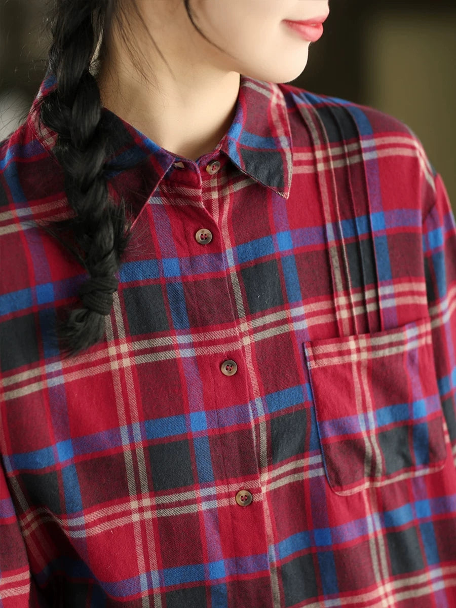 Kunstnerisk rutete vårskjorte med nedfellbar krage for kvinner