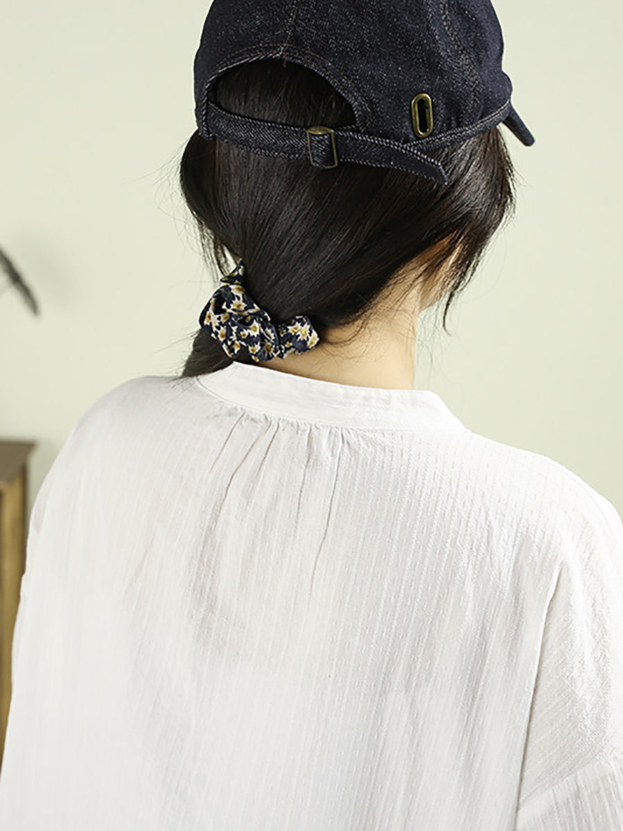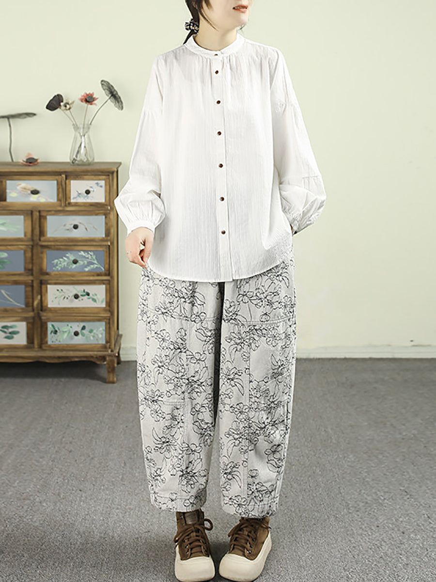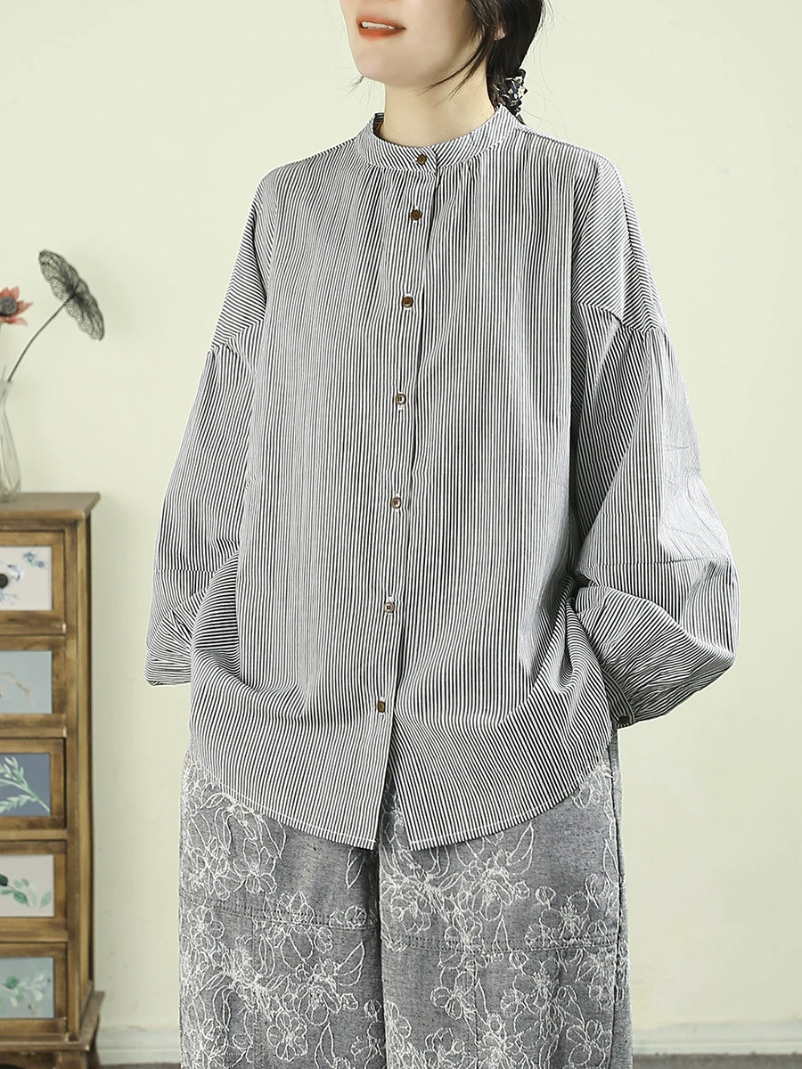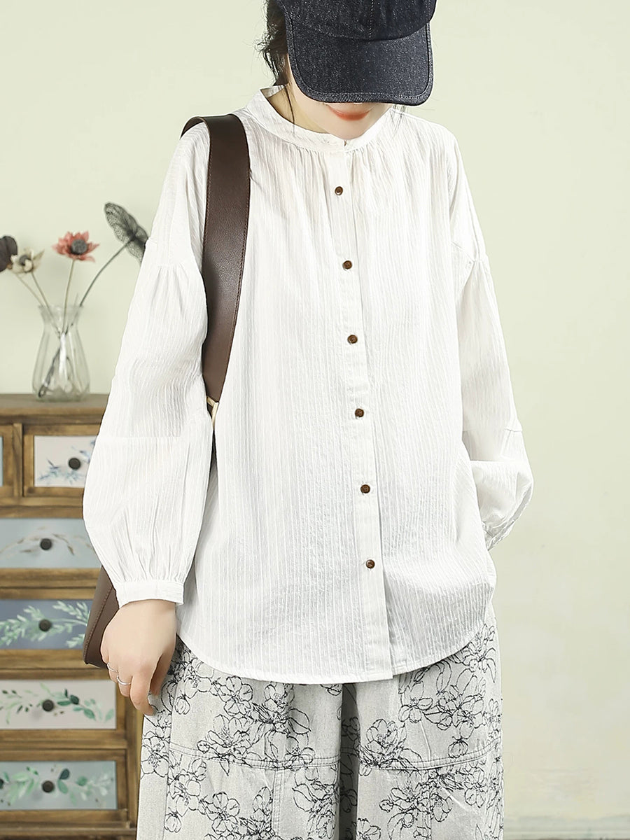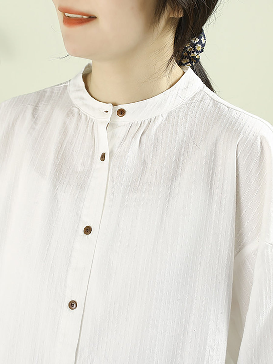 Dame vårskjorte med kunstnerisk, ren farge, 100 % bomull og stående krage