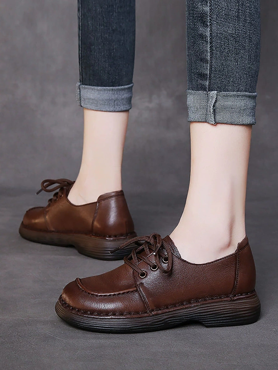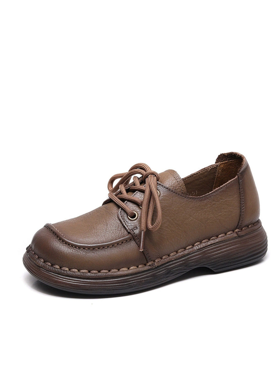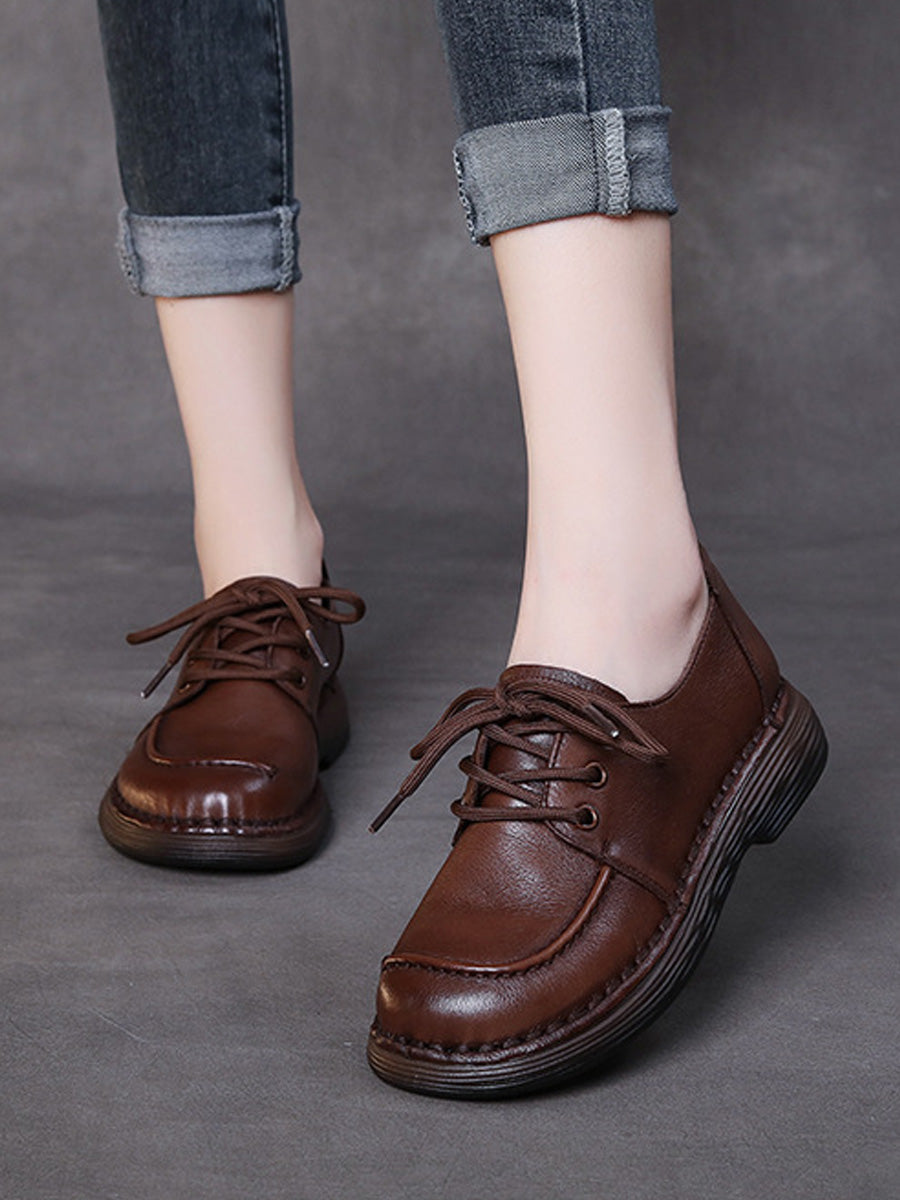 Dame Vår Ren Farge Ekte Lær Flate Sko