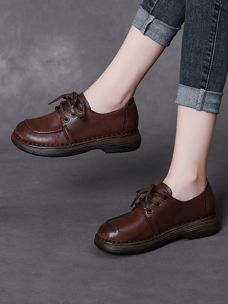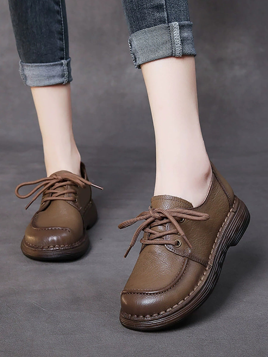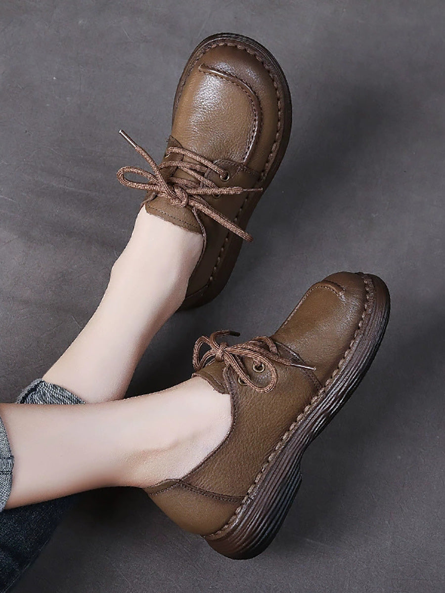 Dame Vår Ren Farge Ekte Lær Flate Sko