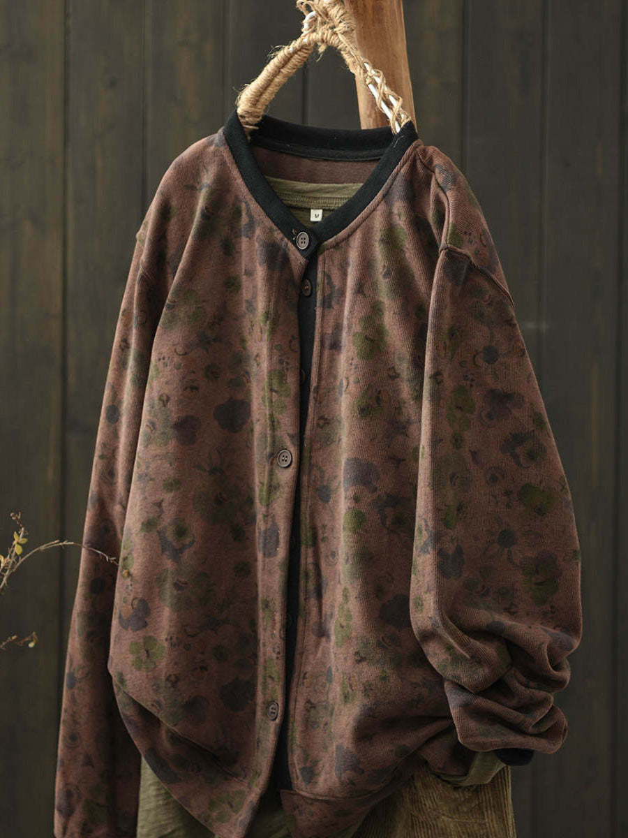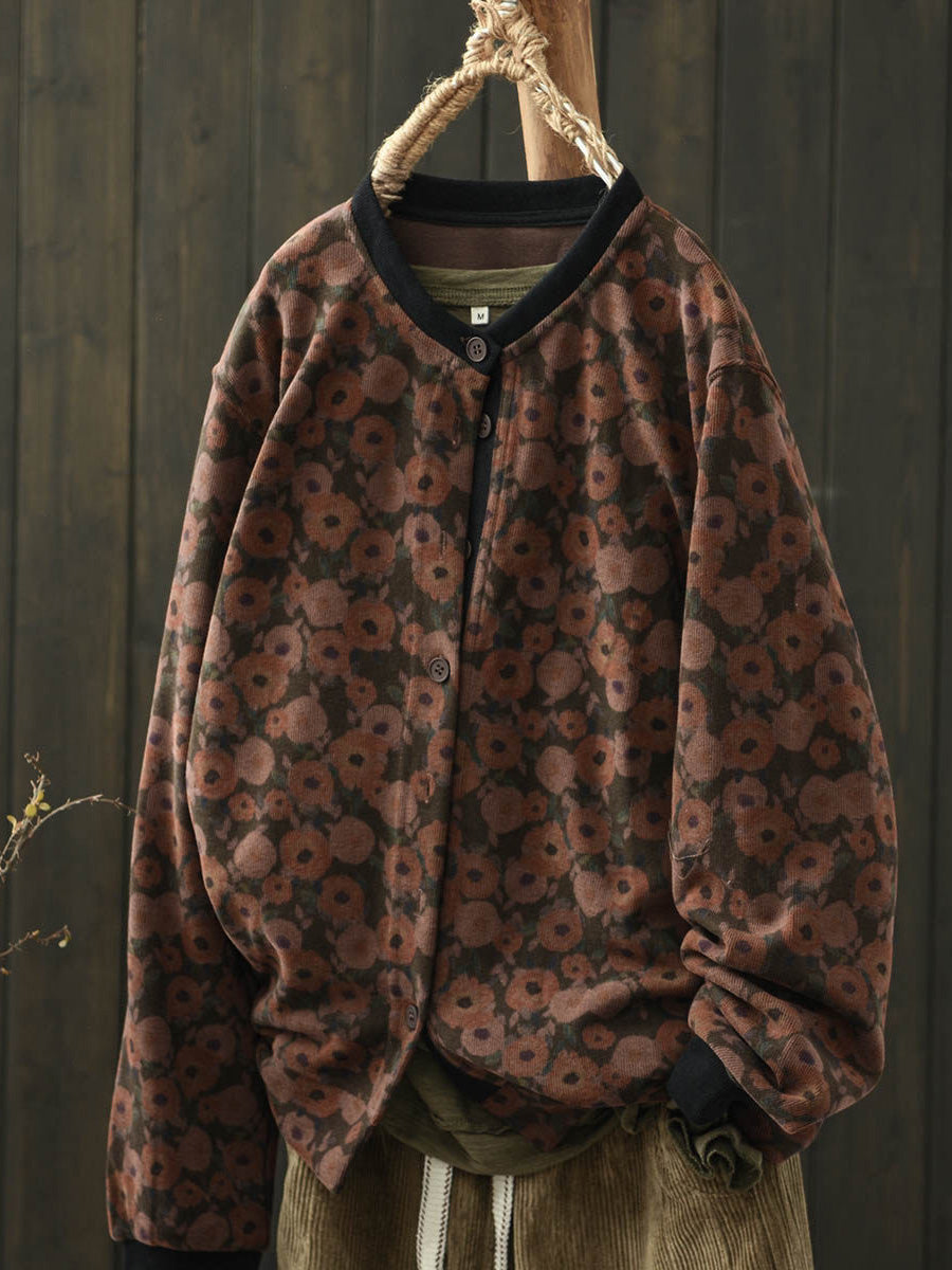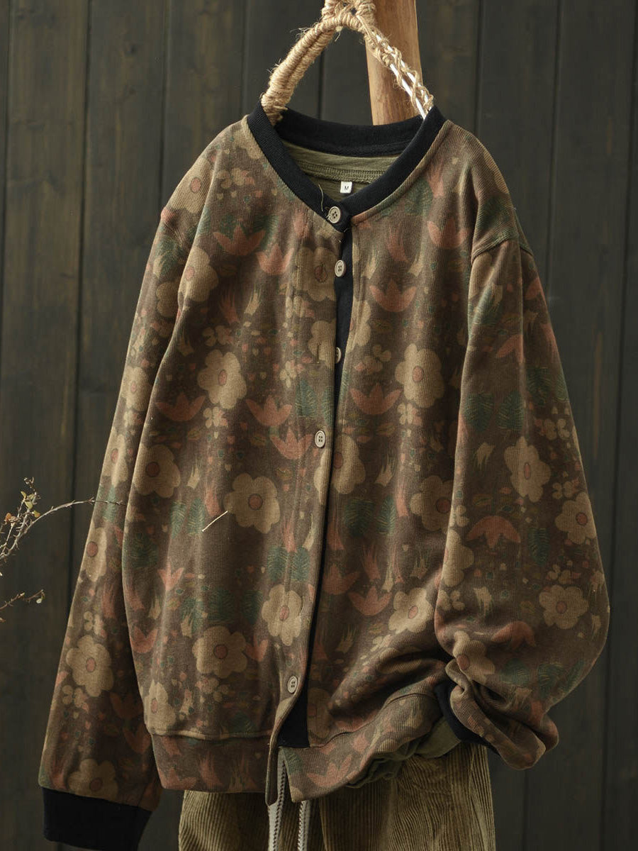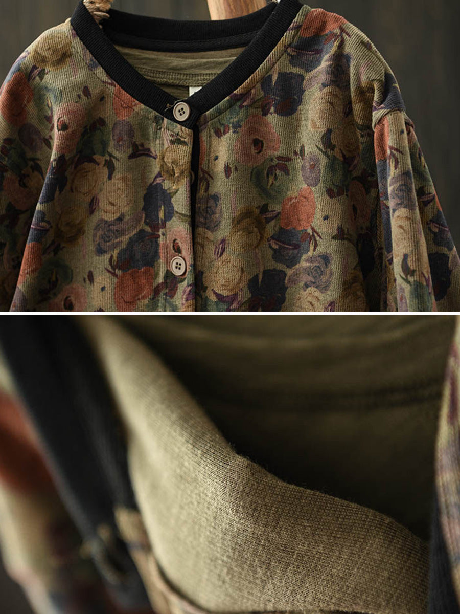 Dame vårkåpe med vintage blomsterprint og O-hals i bomull
