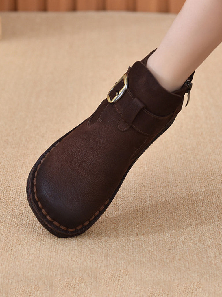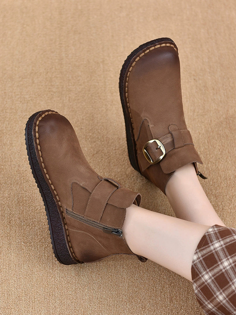 Dame vintage ankelstøvletter med lav hæl i ekte skinn
