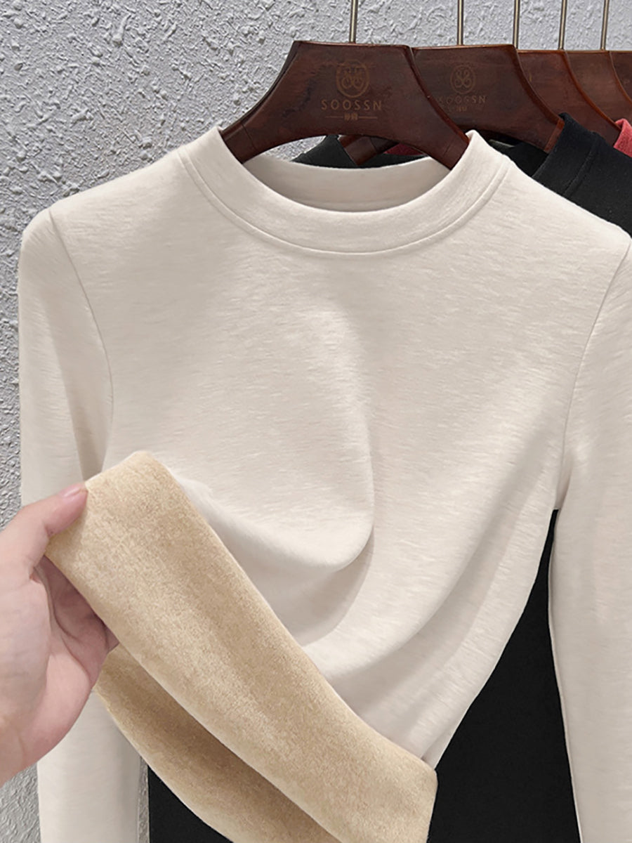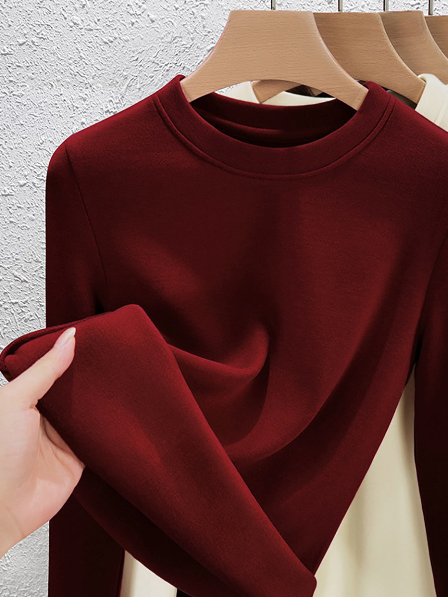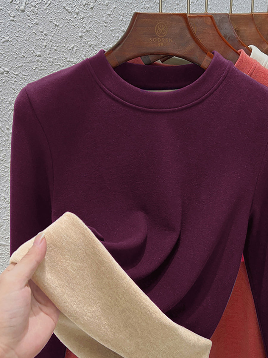 Kunstnerisk vinterbluse med ren farge og O-hals