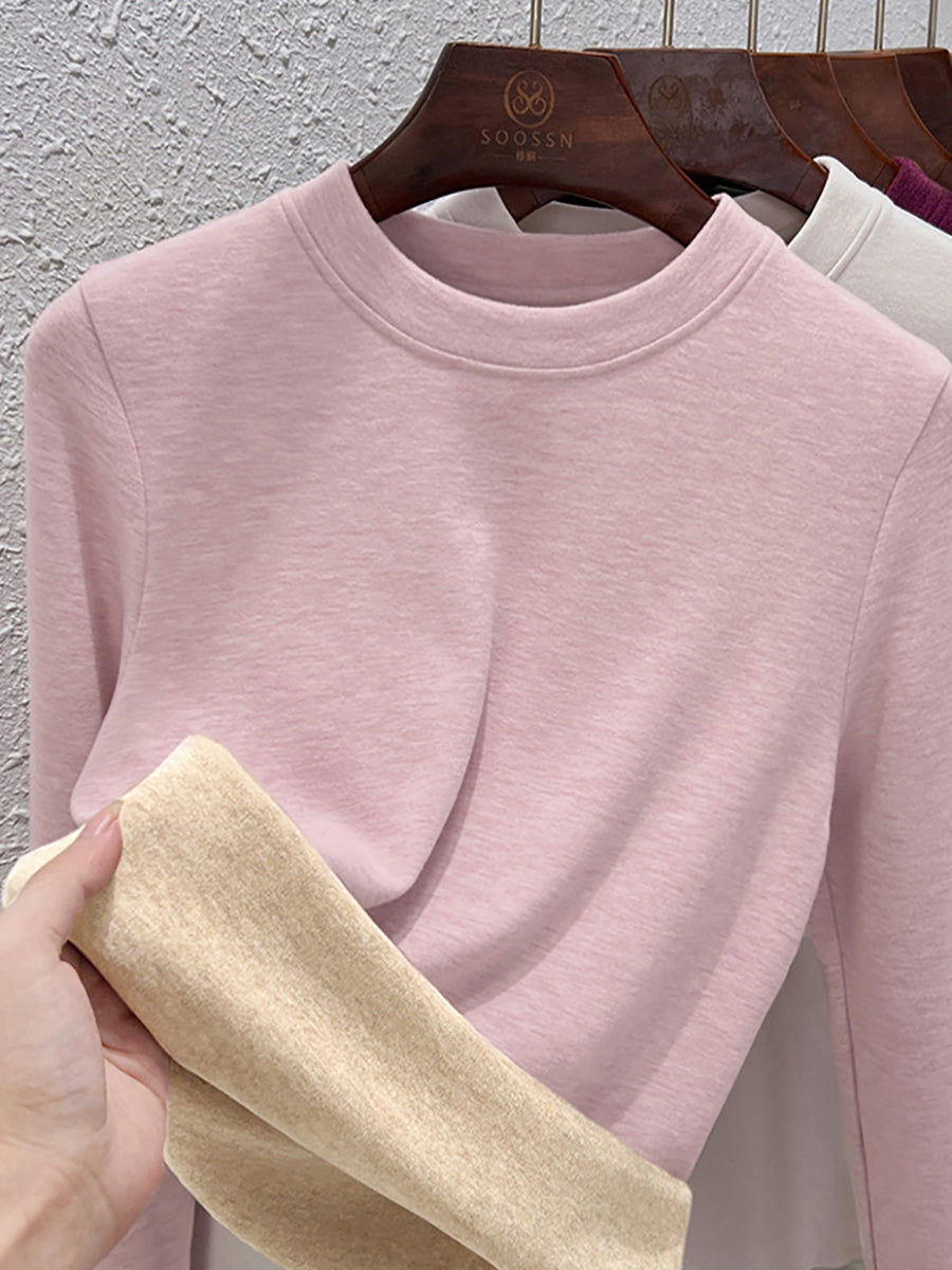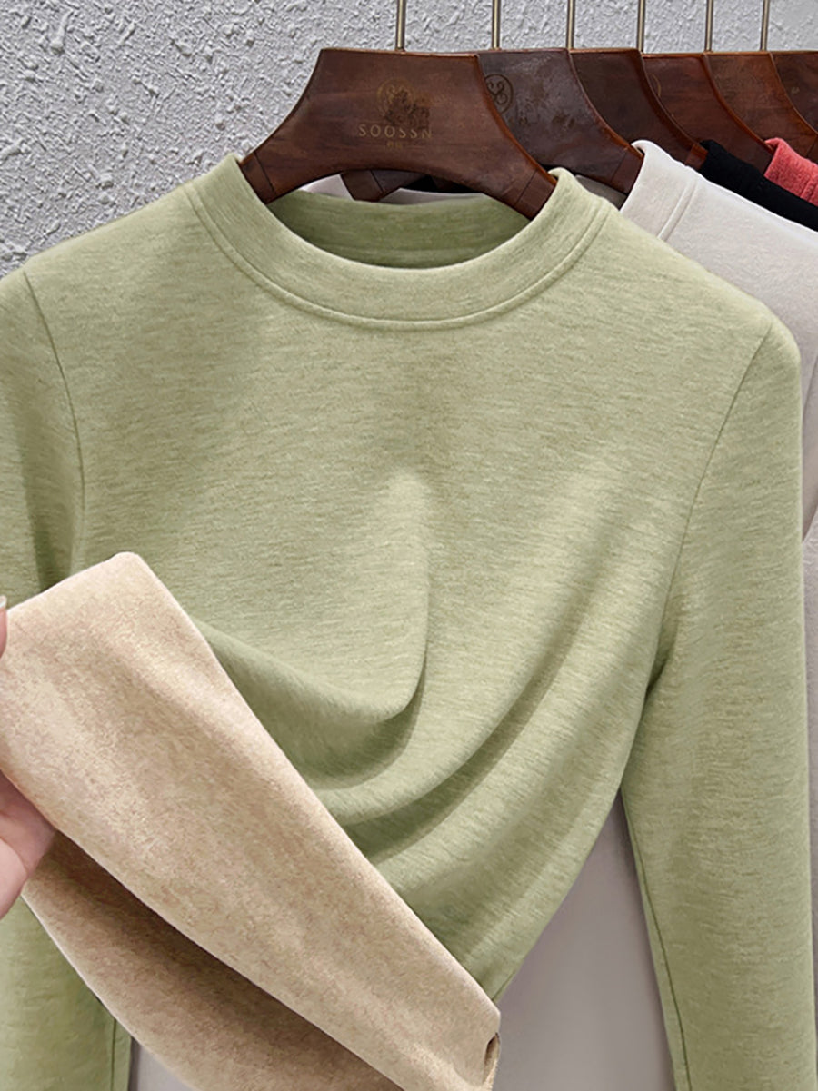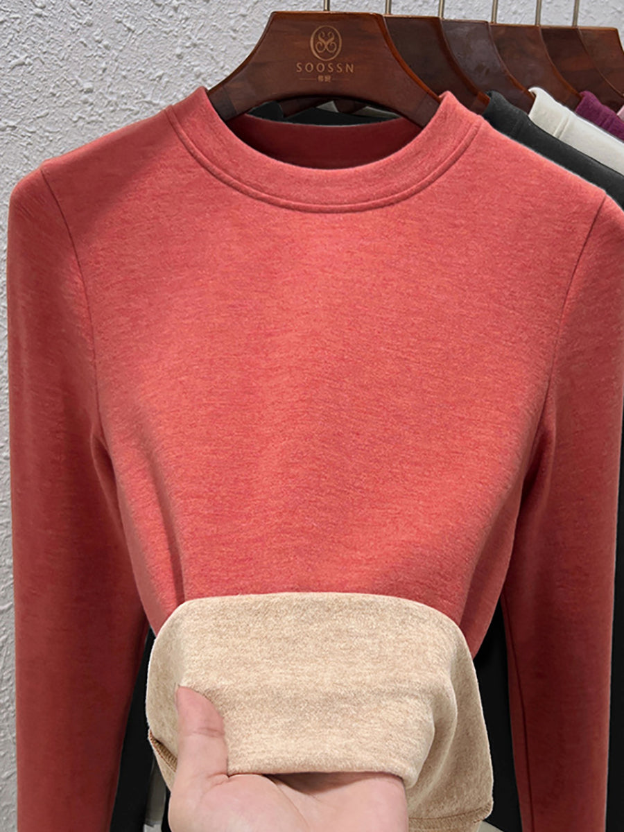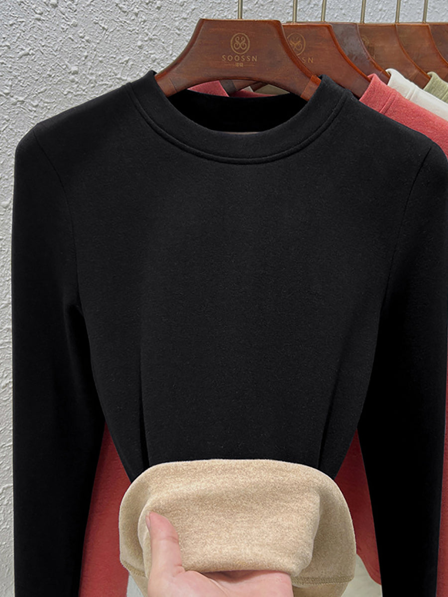 Kunstnerisk vinterbluse med ren farge og O-hals