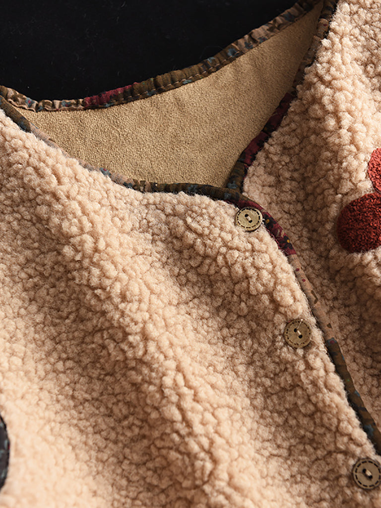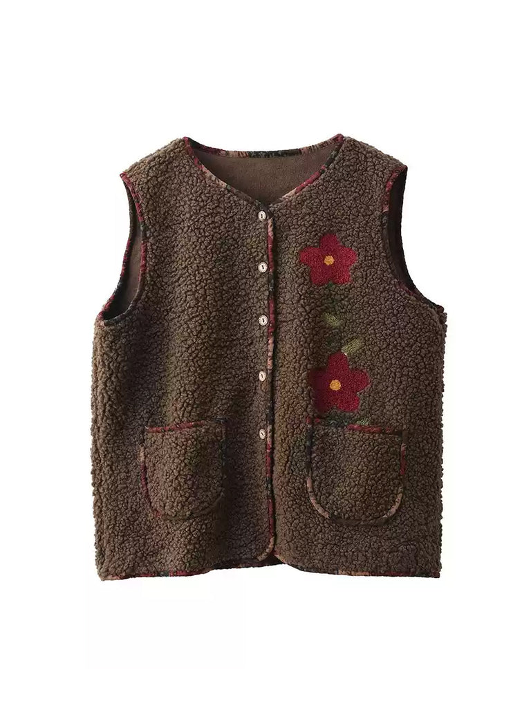 Den har en O-halskrage, ermeløs design og retrostil. Den er perfekt for høst- og vintersesongen.
