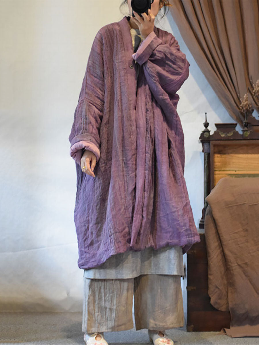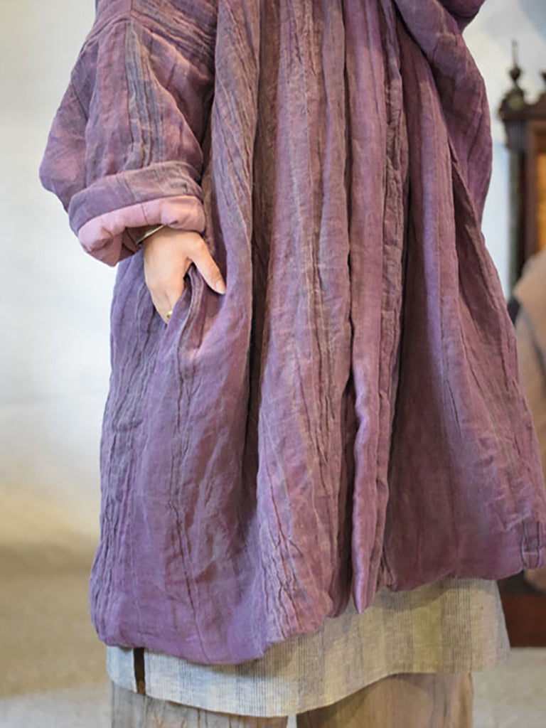Kvinner Vinter Vintage Solid Crinkle Pocket Polstret frakk
