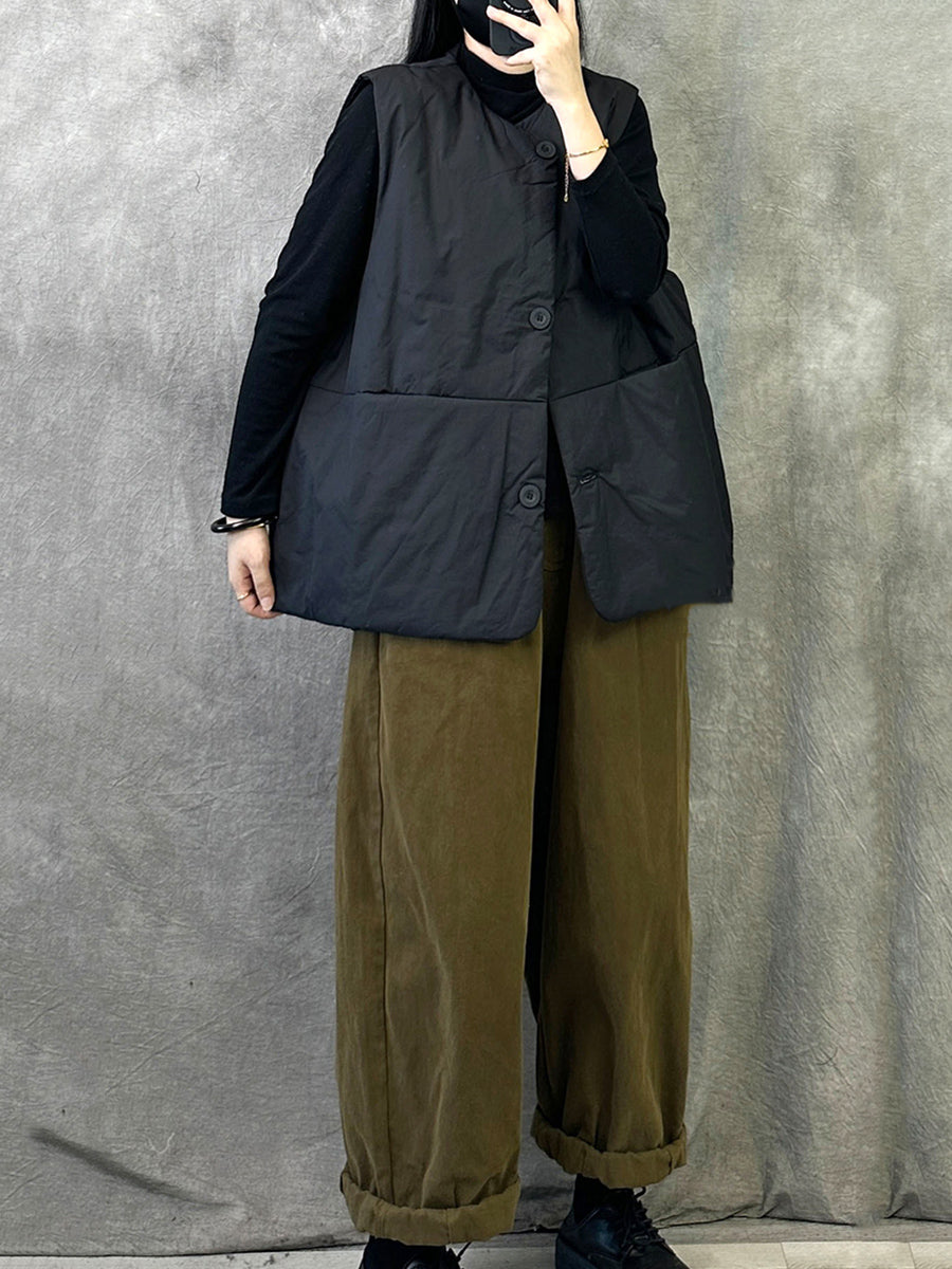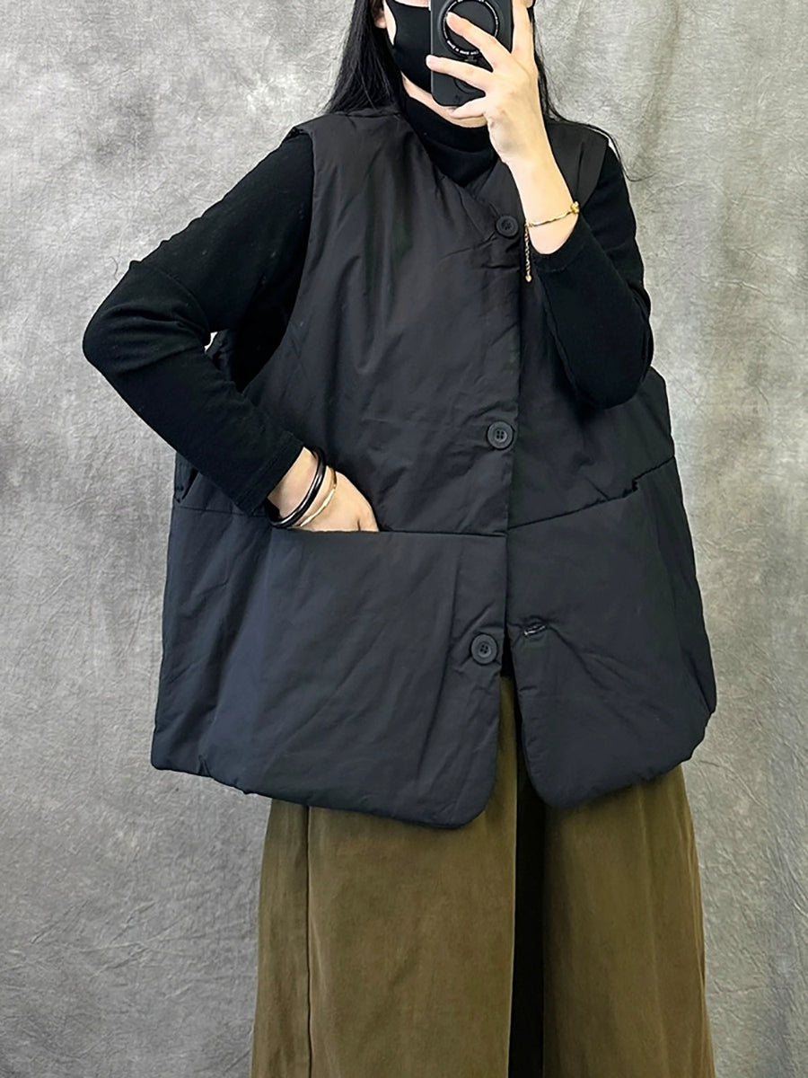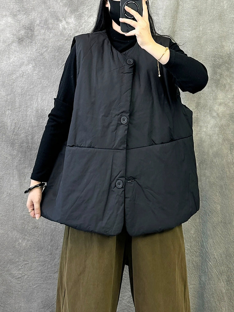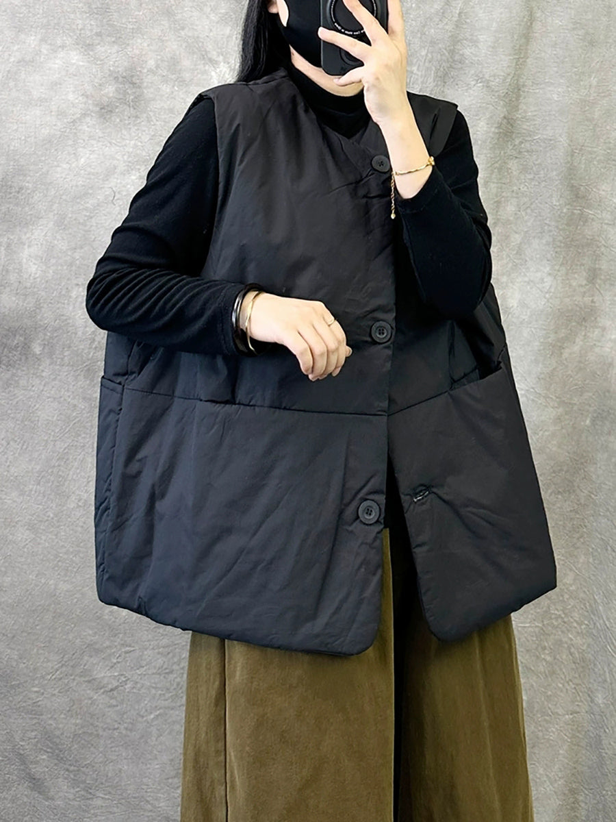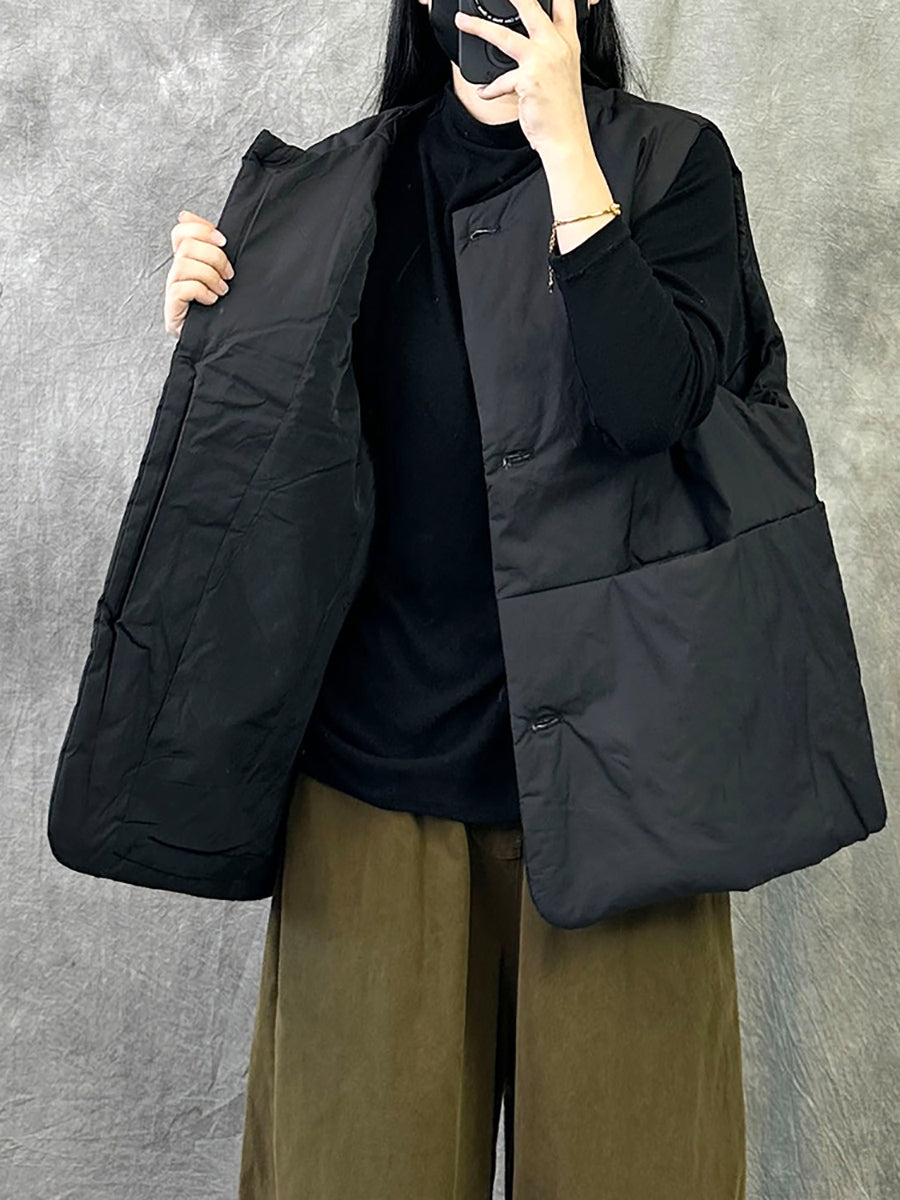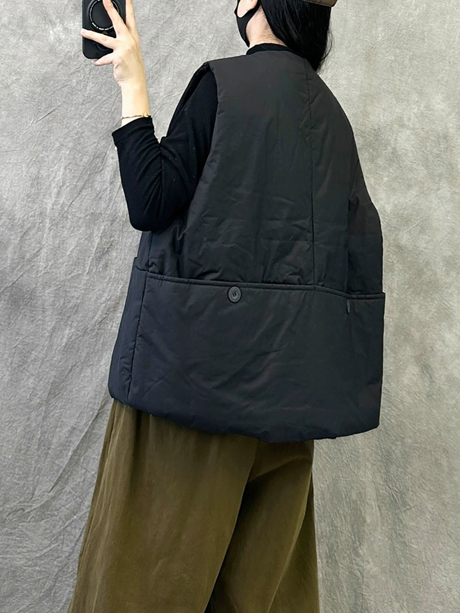 Damska zimowa, swobodna, jednokolorowa kamizelka pikowana