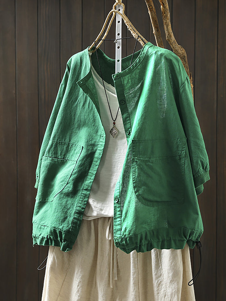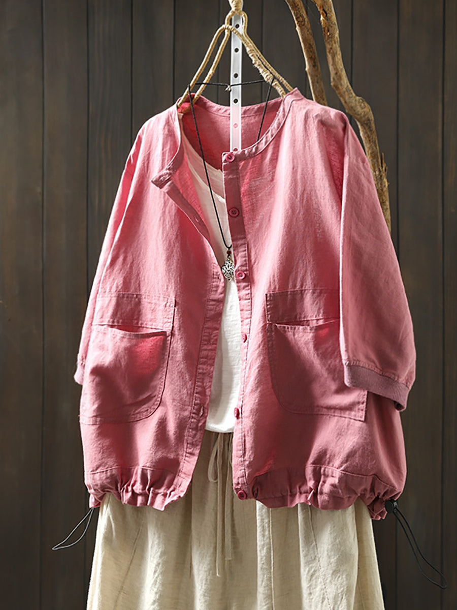 Damska letnia koszula z okrągłym dekoltem w artystycznym, jednolitym kolorze