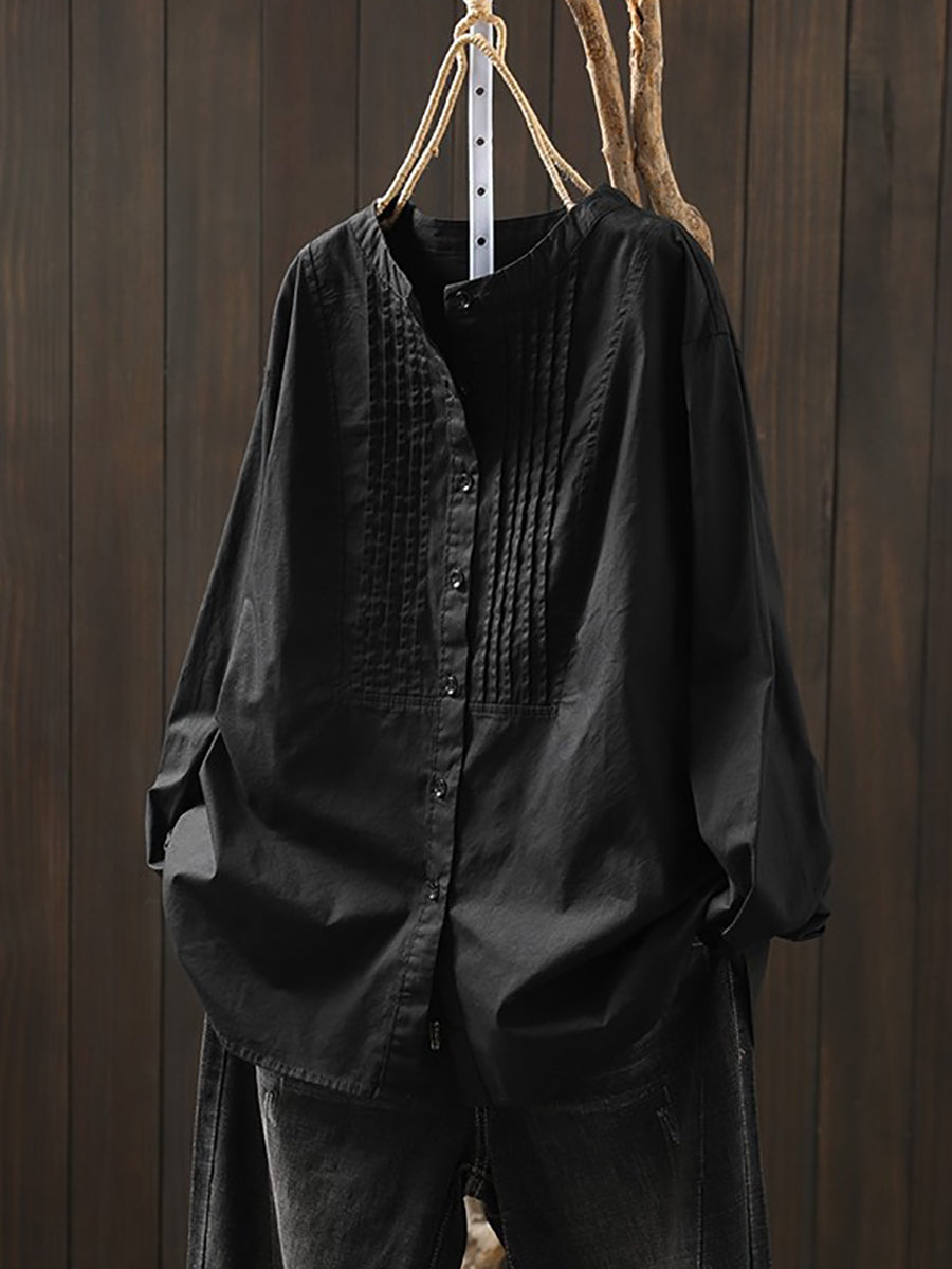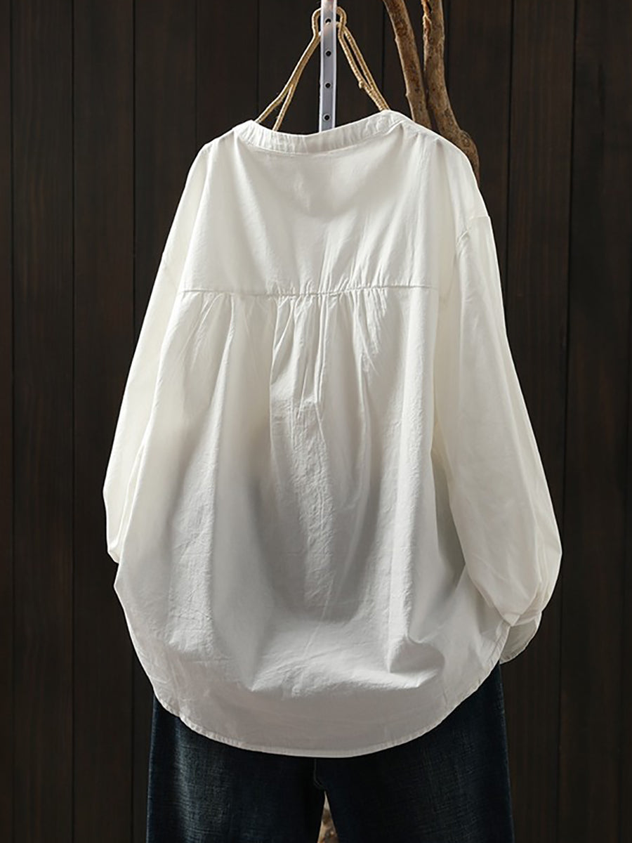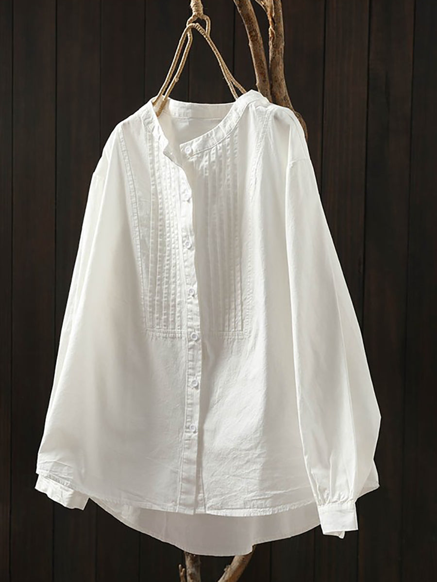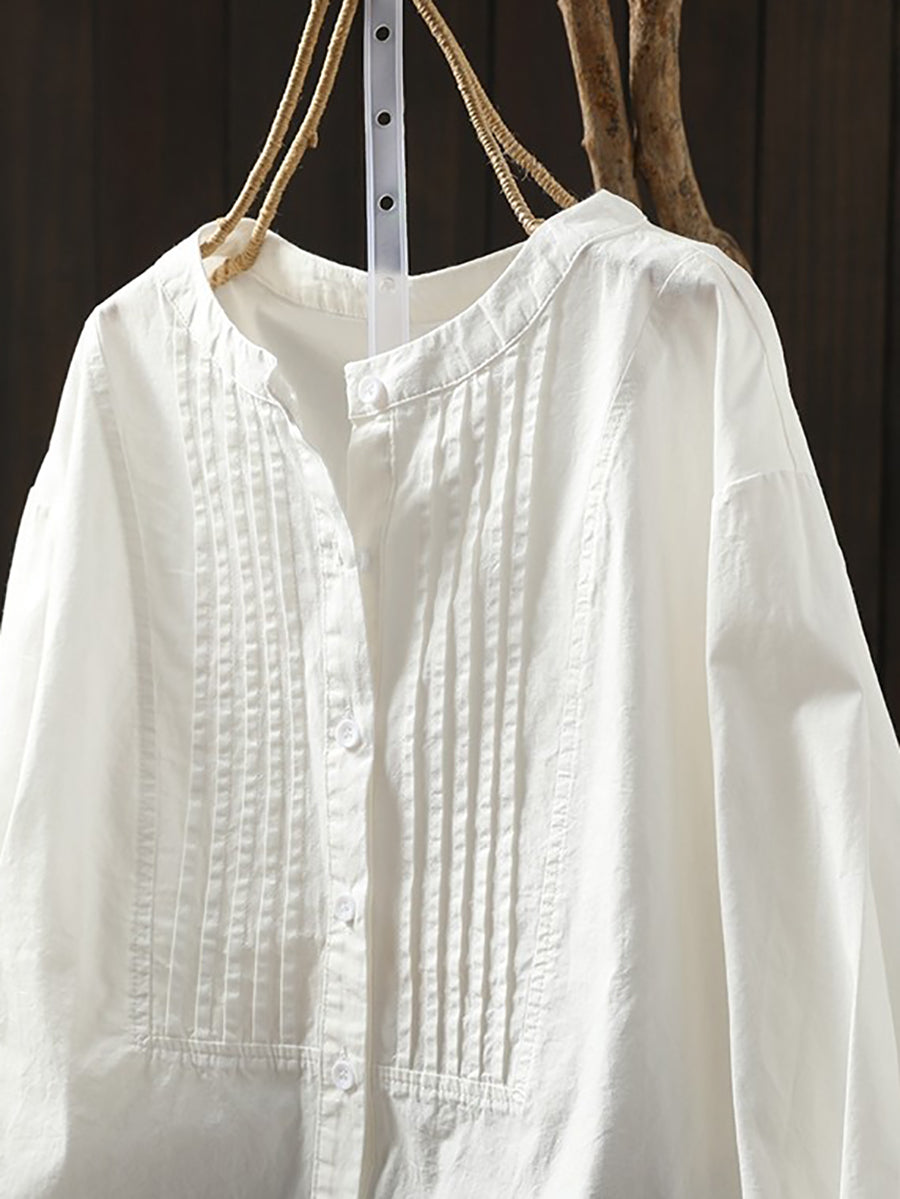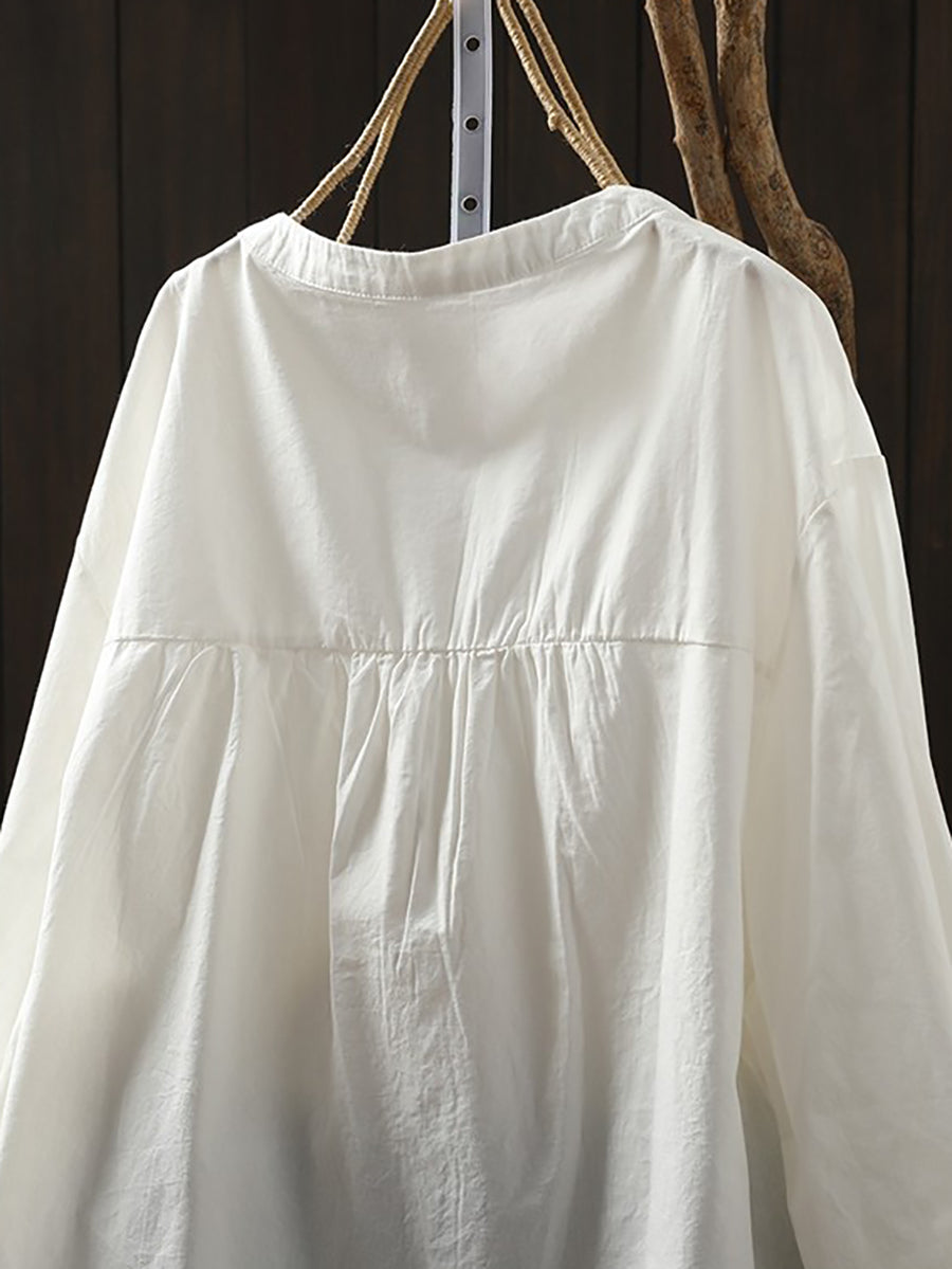 Koszula damska z okrągłym dekoltem w stylu artsy spring, 100% bawełny, marszczona