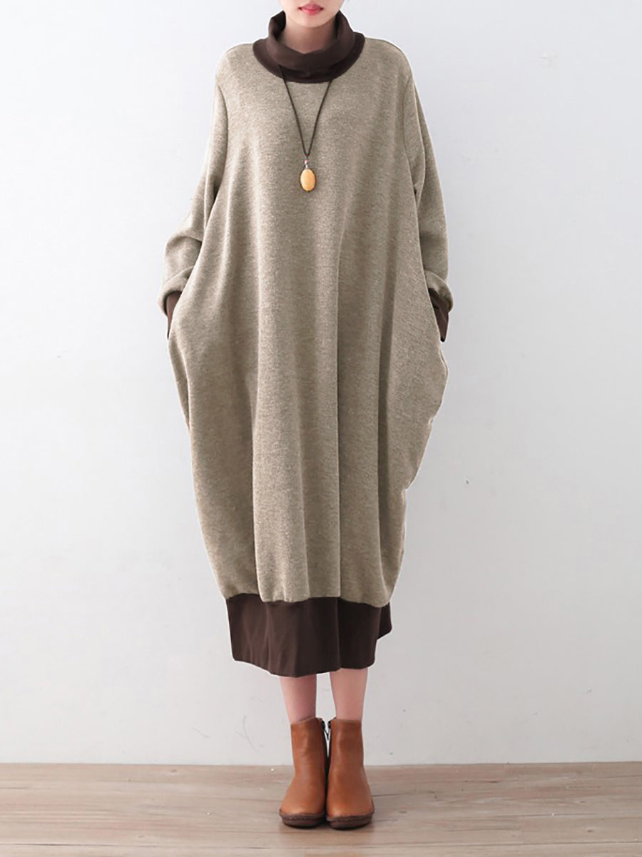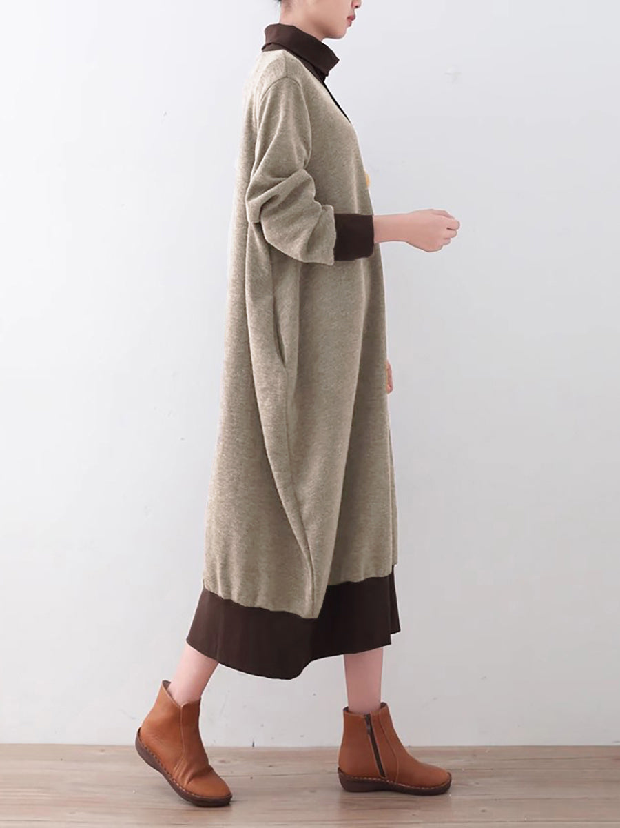 Damska sukienka w stylu vintage z jesiennymi kwiatami i blokami kolorów