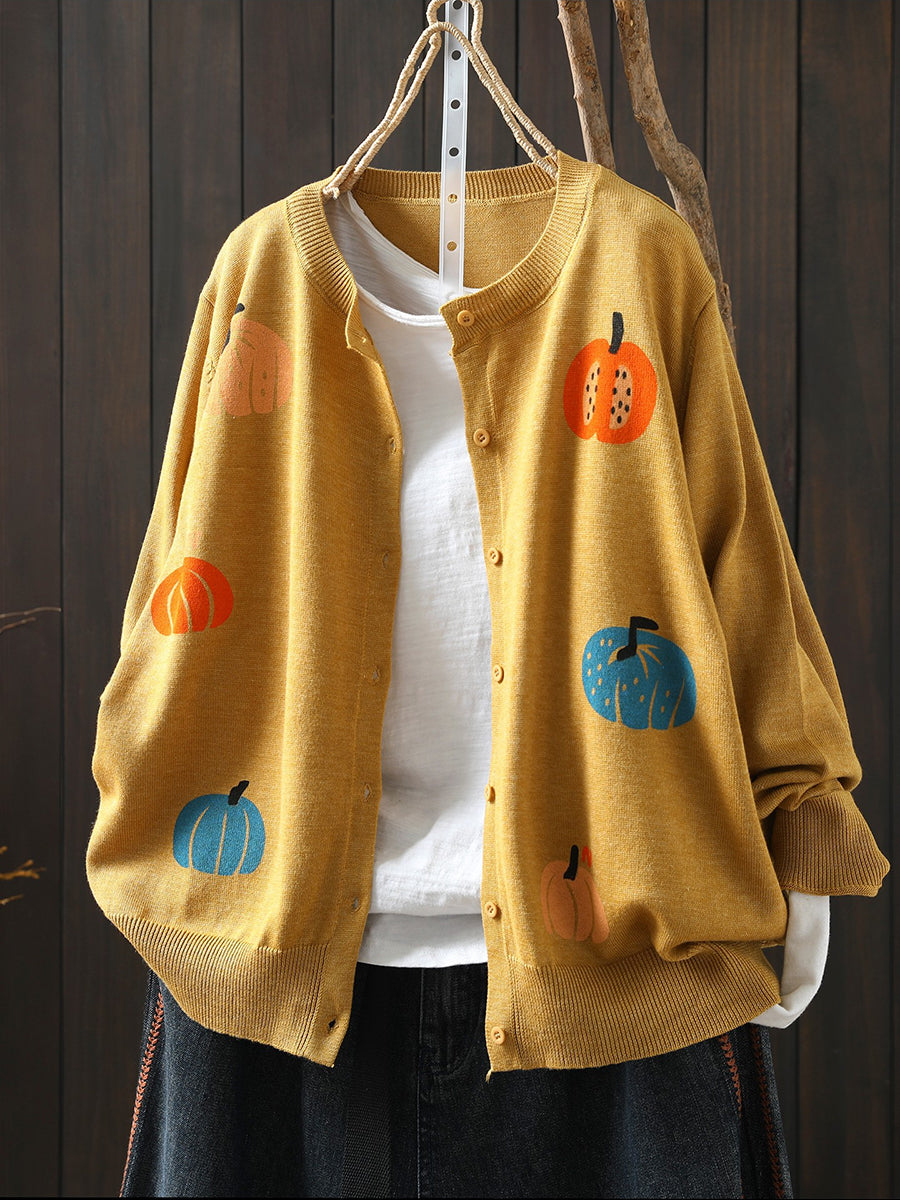 Damski sweter z okrągłym dekoltem w stylu artsy spring w dynię