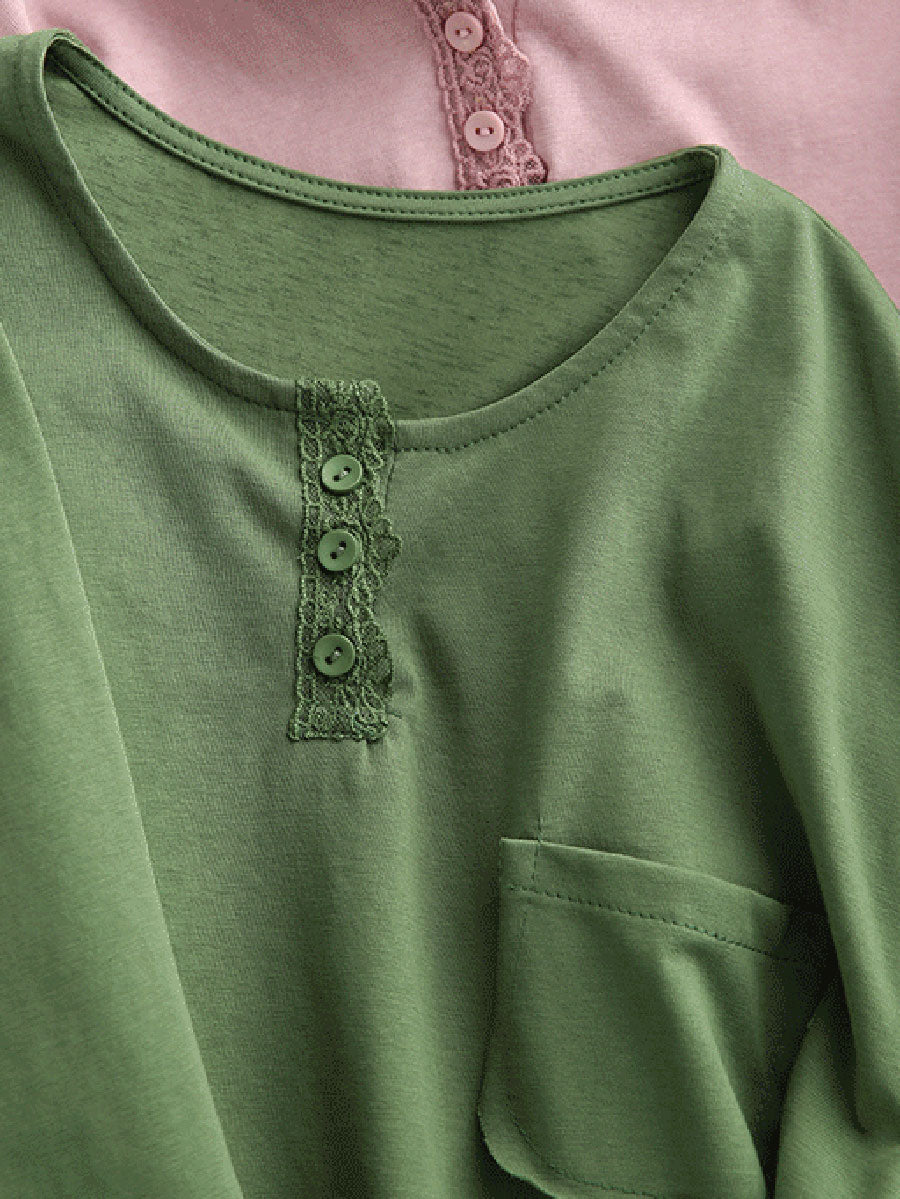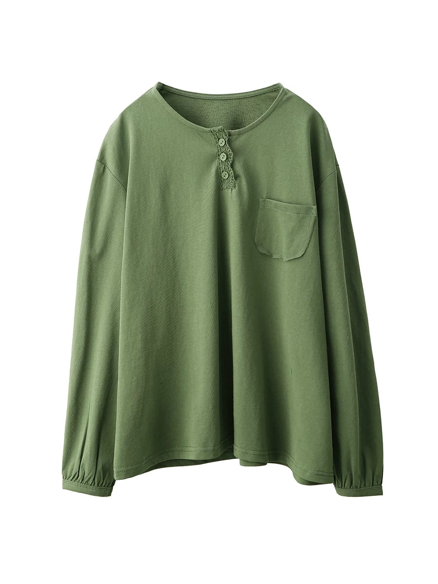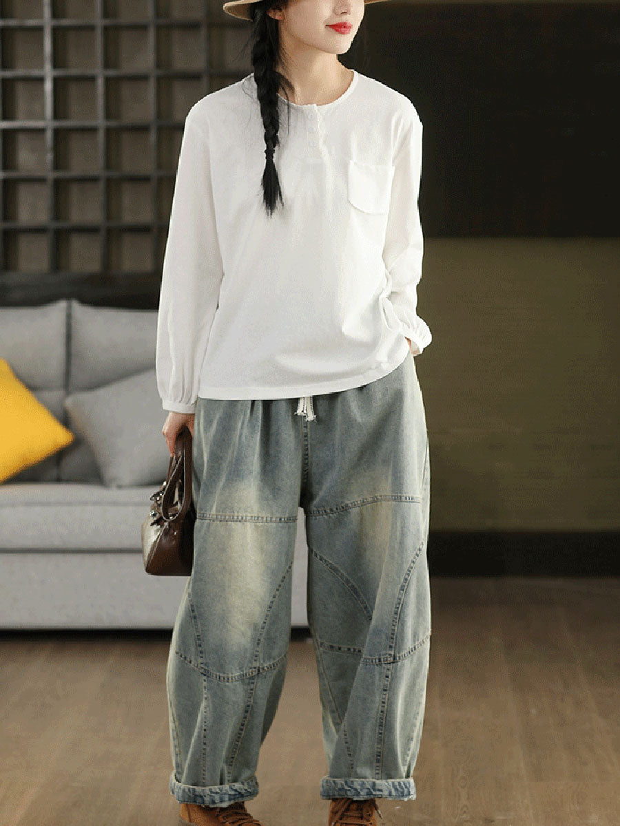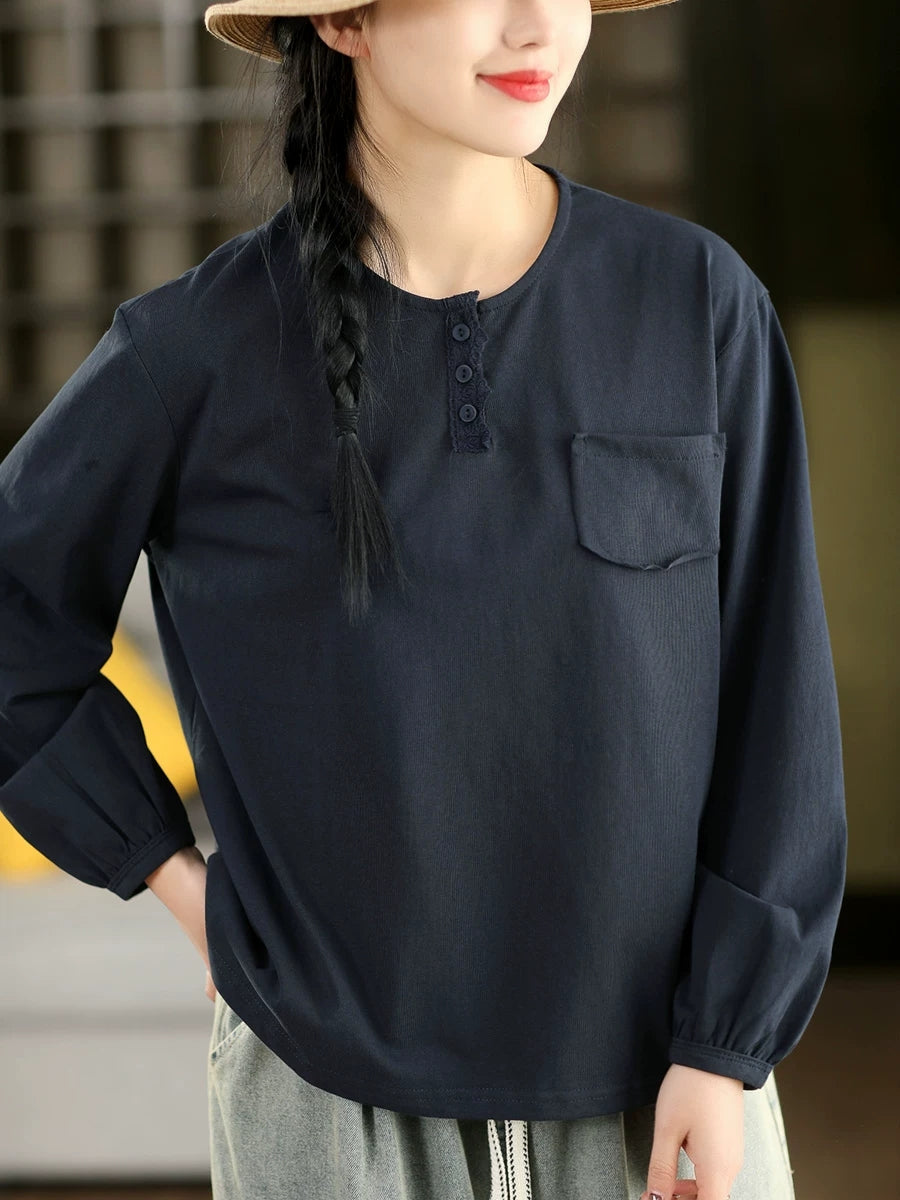 Damska bluzka z okrągłym dekoltem w artystycznym, wiosennym stylu z czystej bawełny