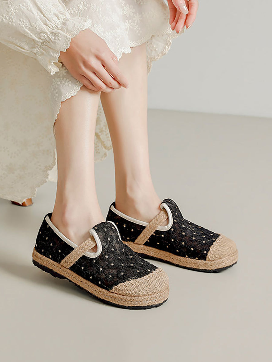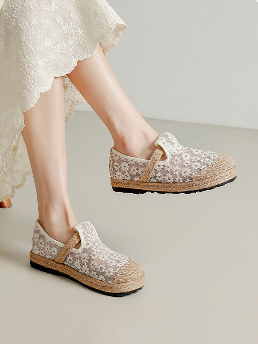 Damskie płaskie buty z haftem kwiatowym w stylu etnicznym
