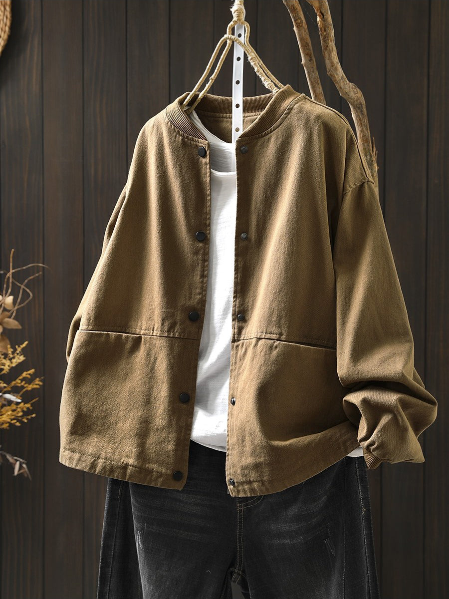 Damska wiosenna, swobodna kurtka w jednolitym kolorze ze stójką