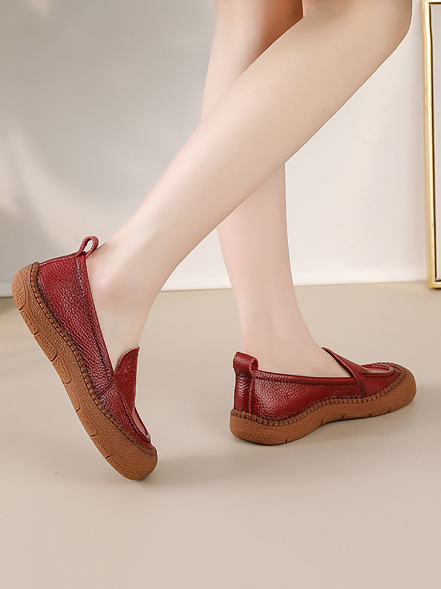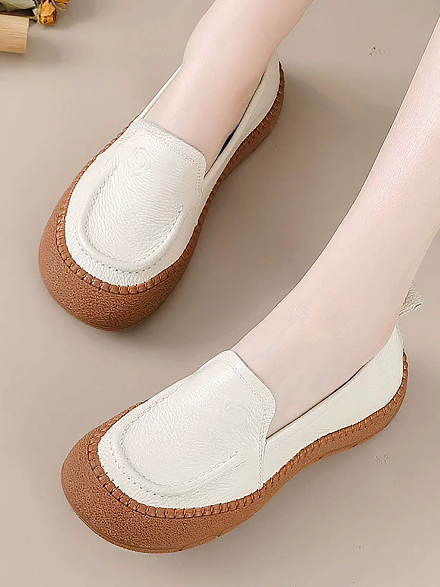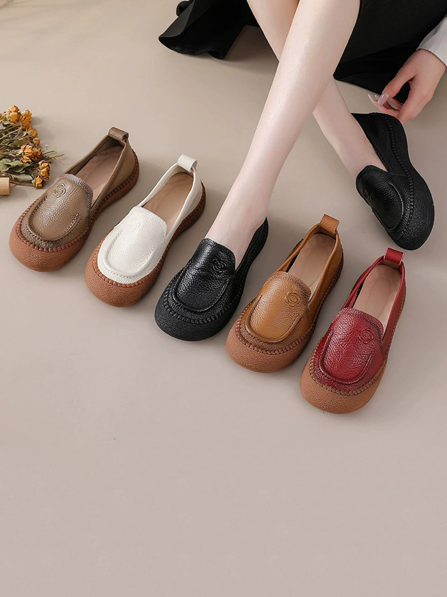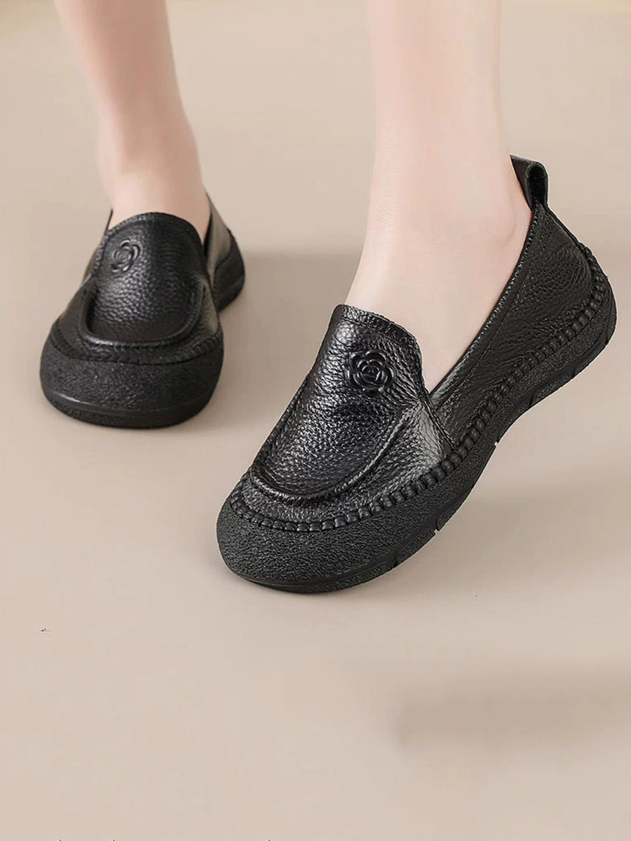 Damskie wiosenne, skórzane, płaskie buty z wytłoczonym kwiatem