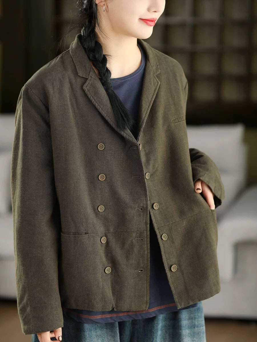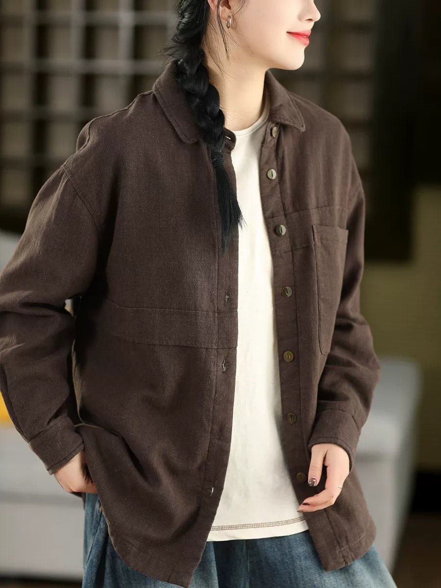 Płaszcz wiosenny damski w jednolitym kolorze z kołnierzem wykładanym, 100% lniany
