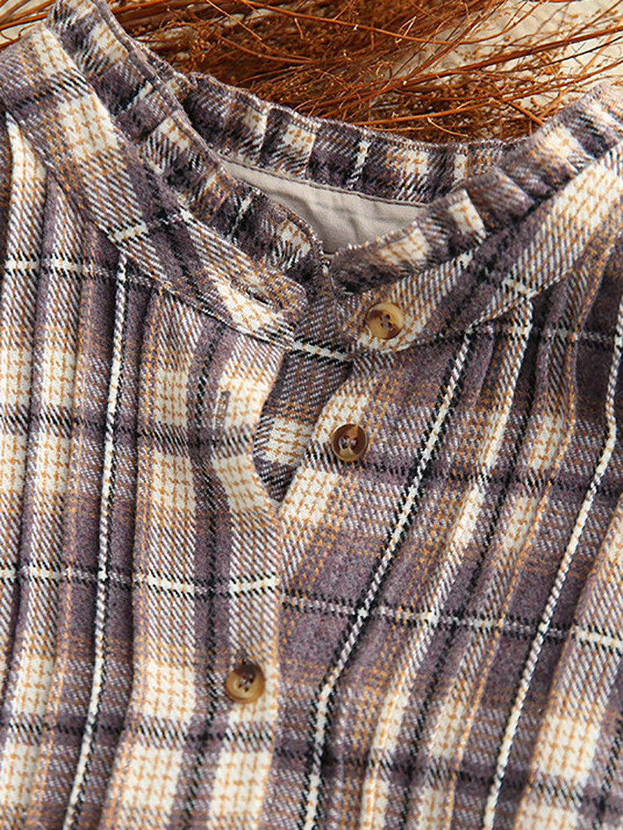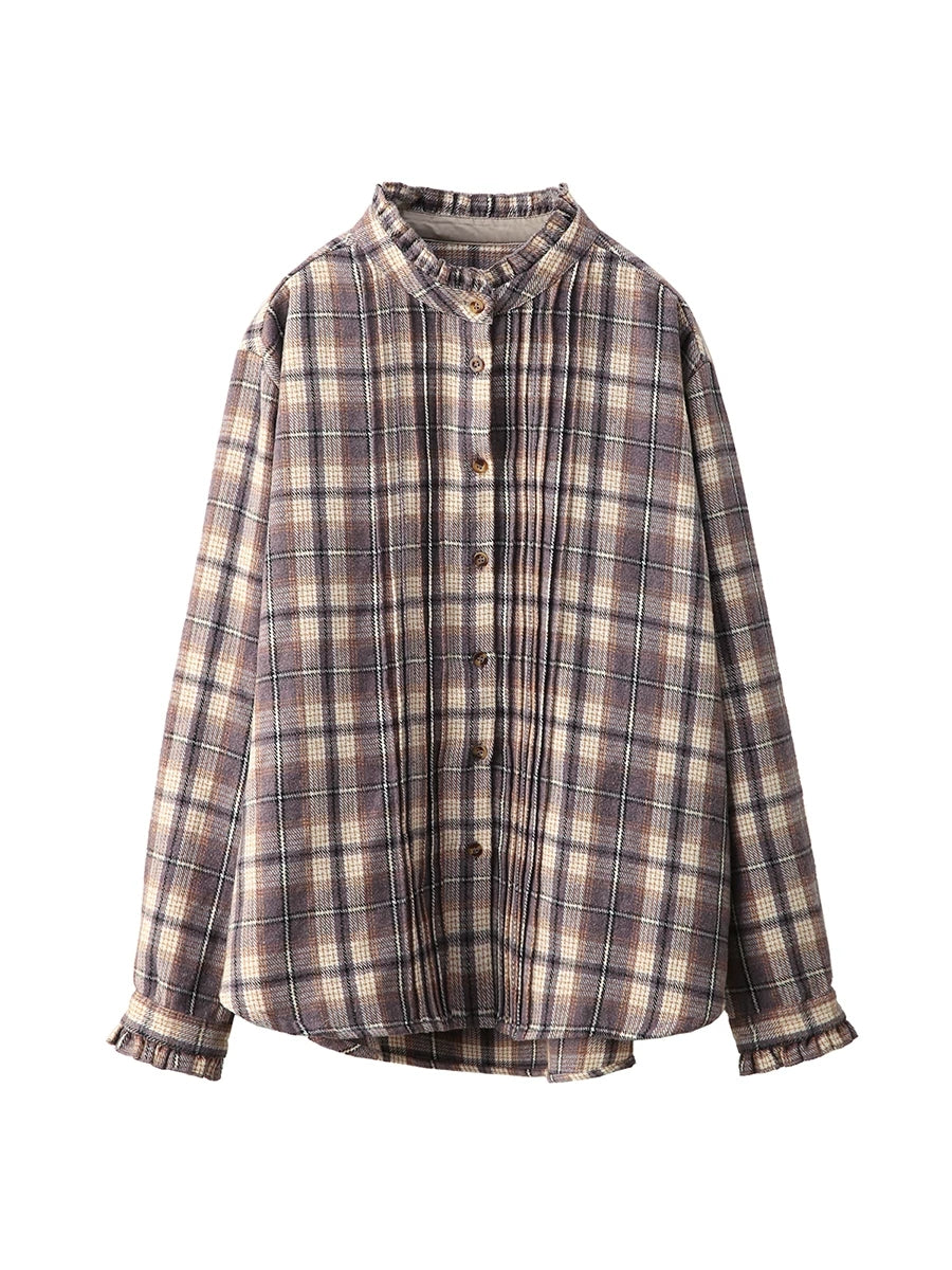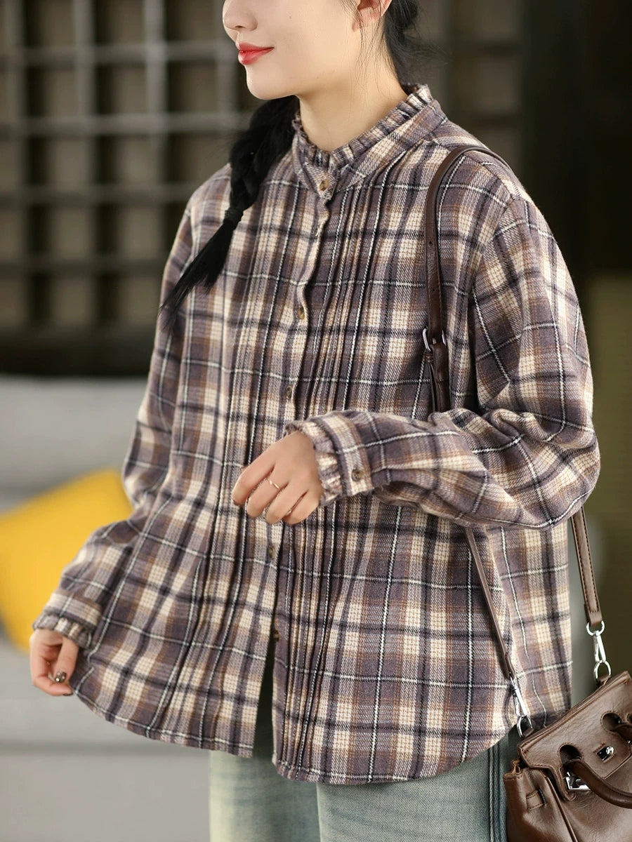 Koszula damska wiosenna w kratę vintage z kołnierzykiem wykładanym