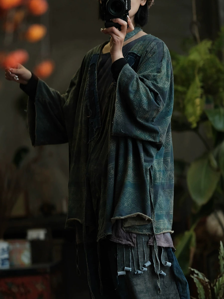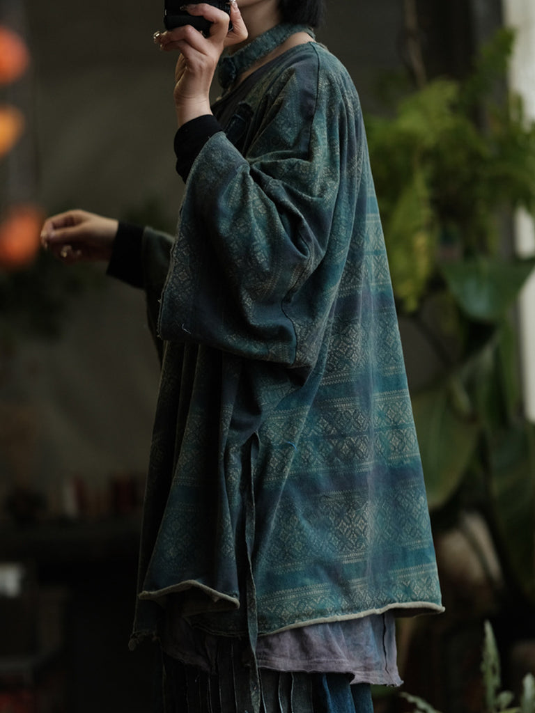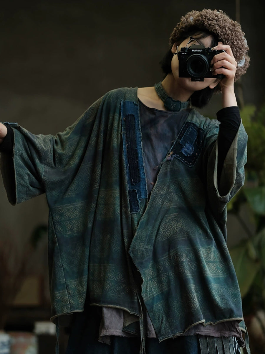 Damska letnia koszula bawełniana z nadrukiem retro i dekoltem w serek