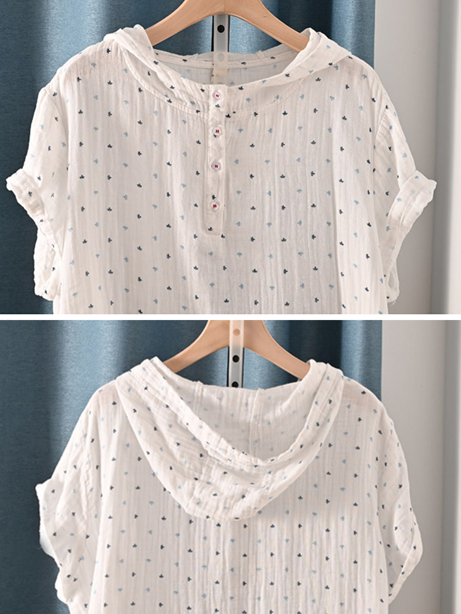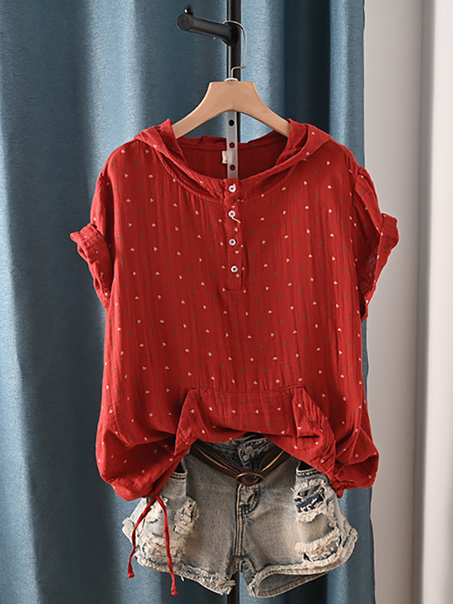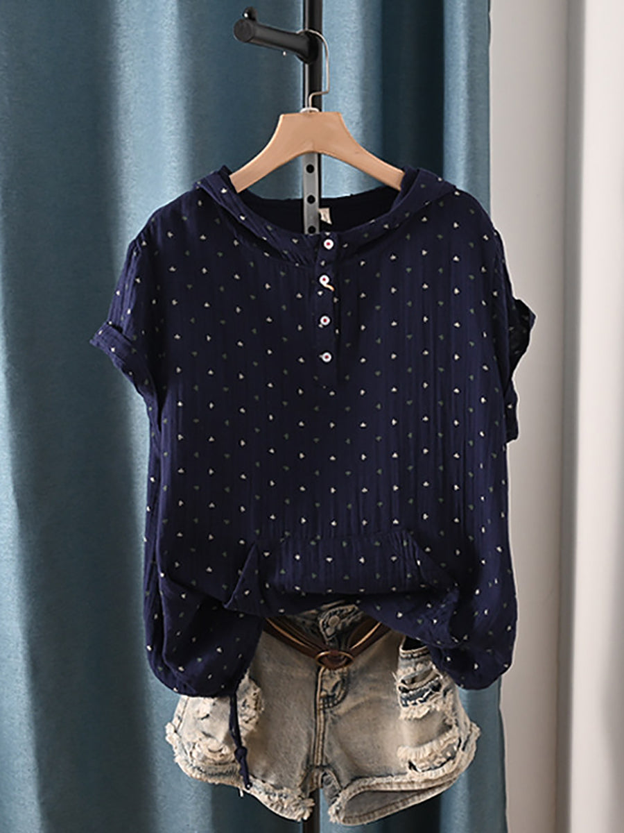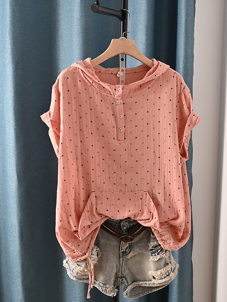 Damska letnia bluza z kapturem w stylu retro z trójkątami, 100% bawełny