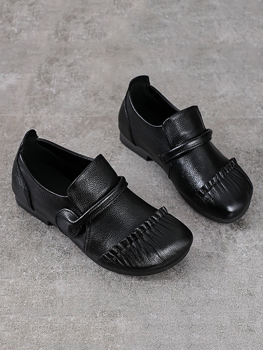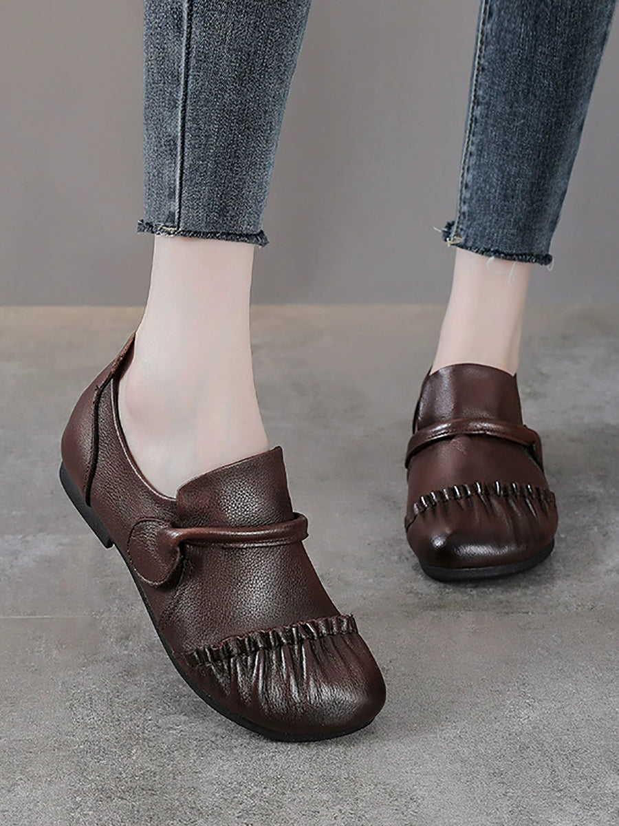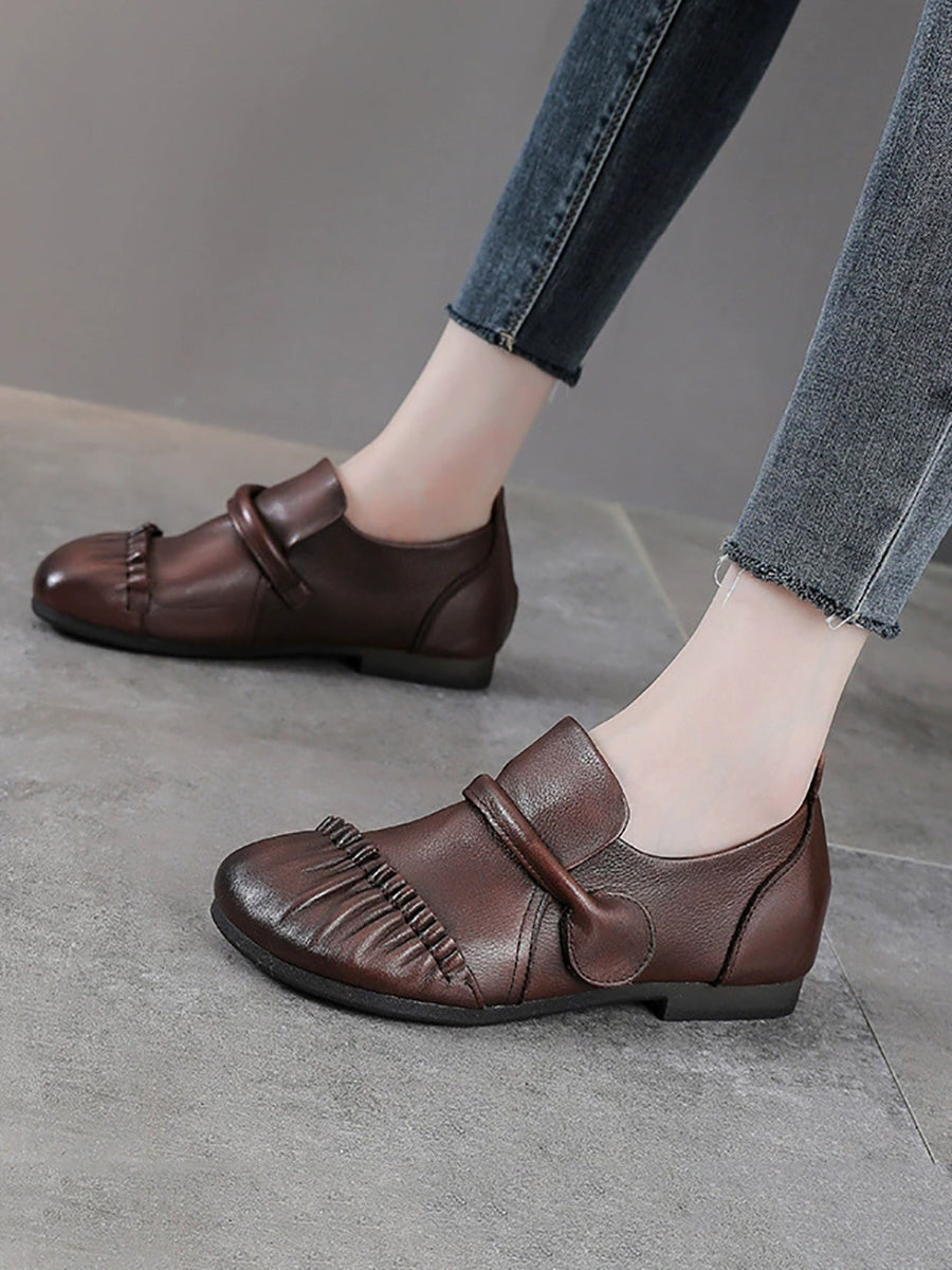 Damskie buty vintage z prawdziwej skóry na niskim obcasie