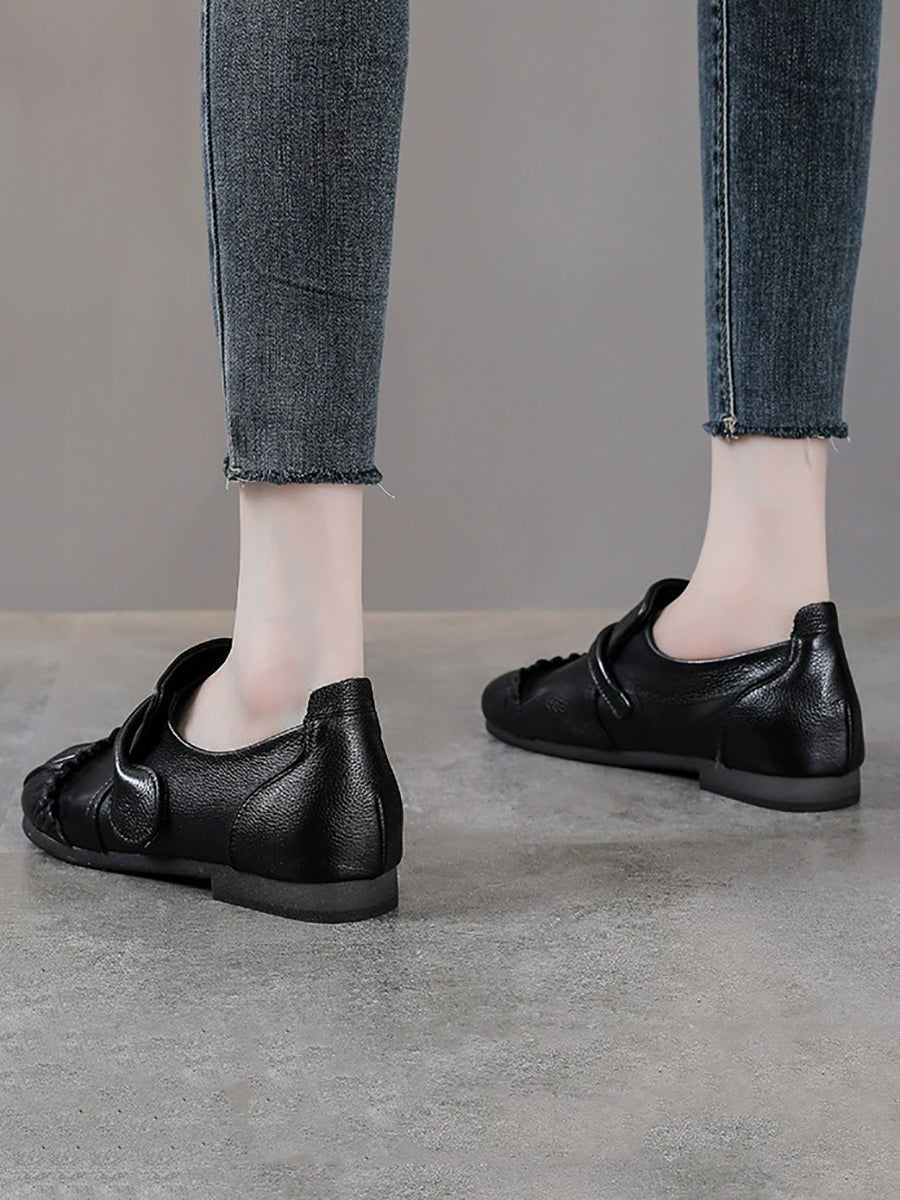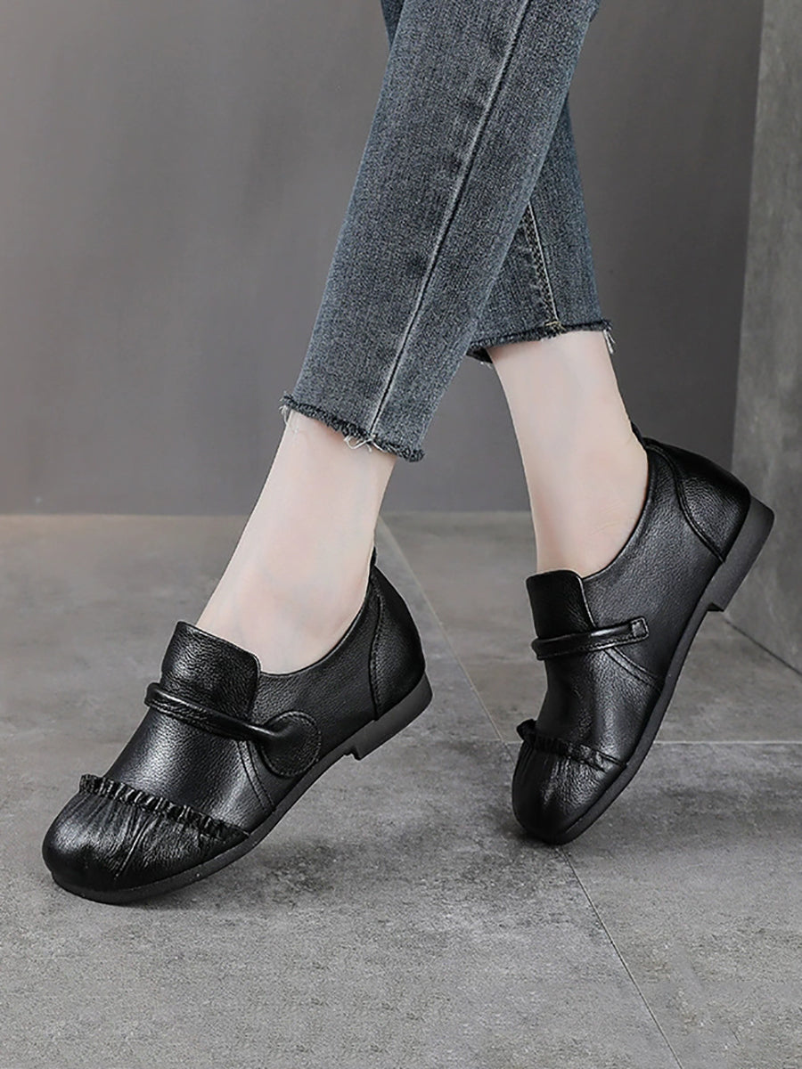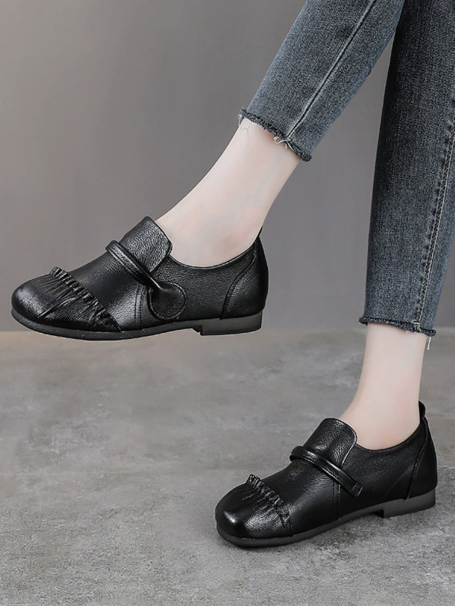 Damskie buty vintage z prawdziwej skóry na niskim obcasie