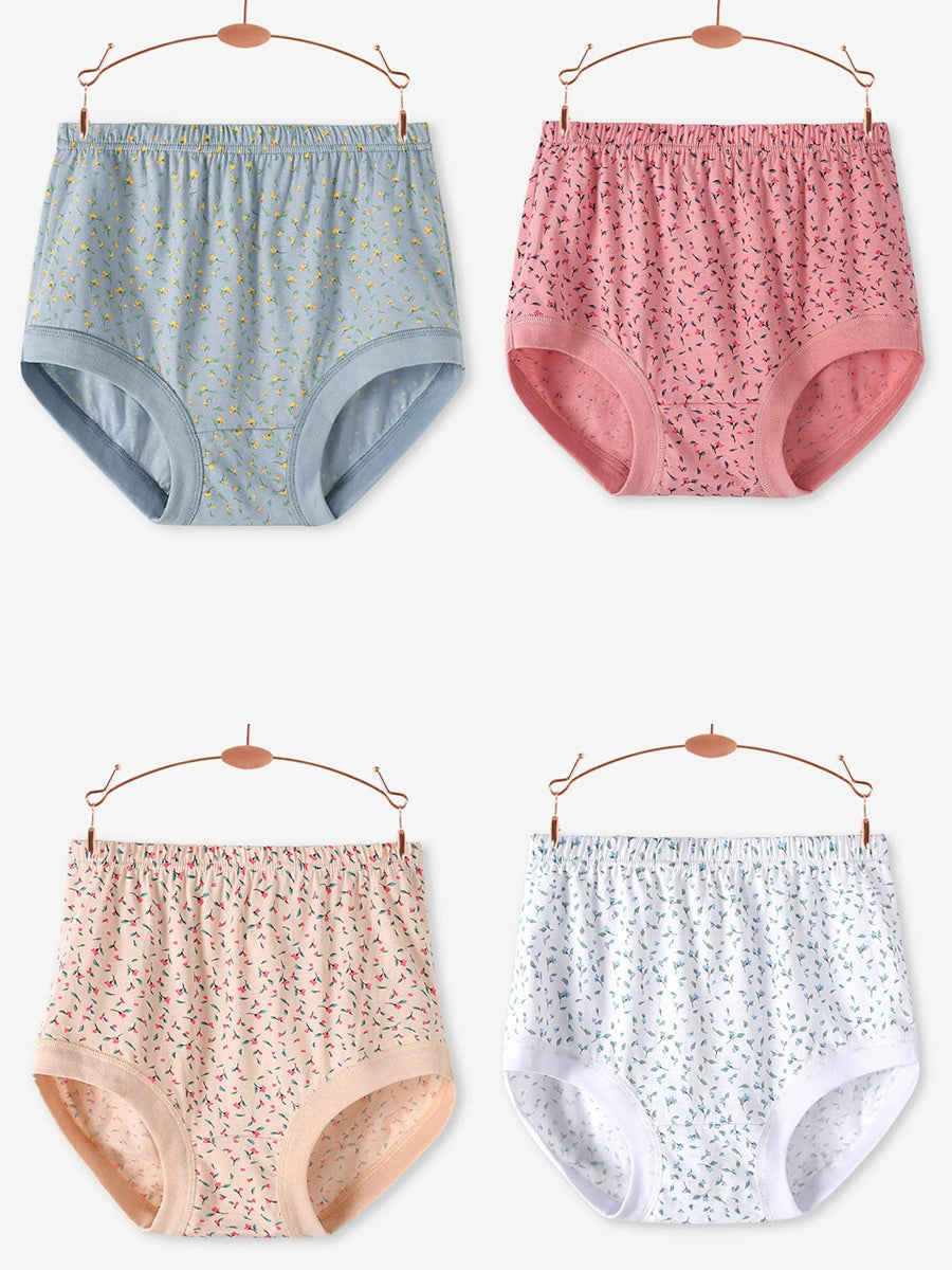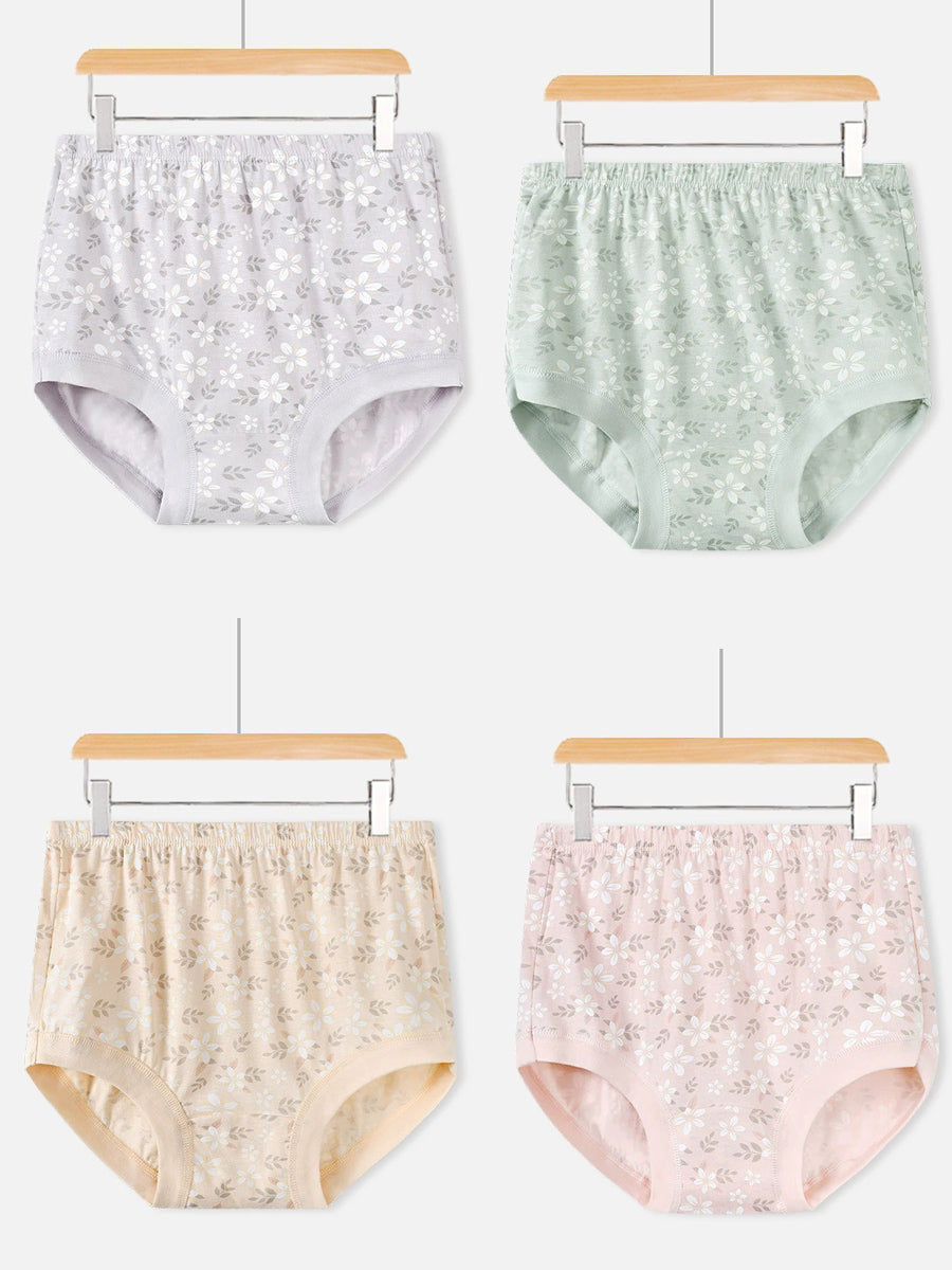 4 Pieces Women Artsy Floral High Waist Underwear