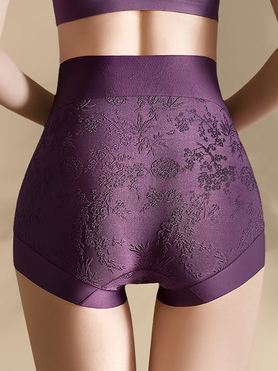 4 Pieces Women Artsy Floral Jacquard High Waist Underwear