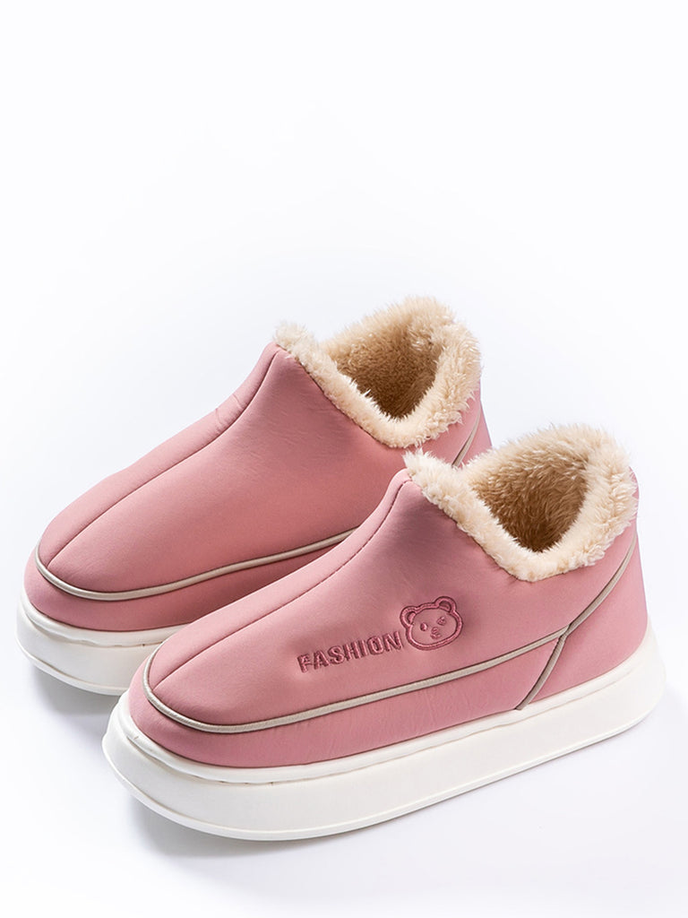 Couple Solid Fleece-lined Indoor Platform Shoes