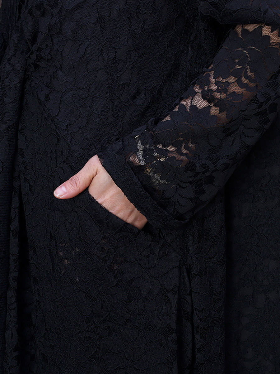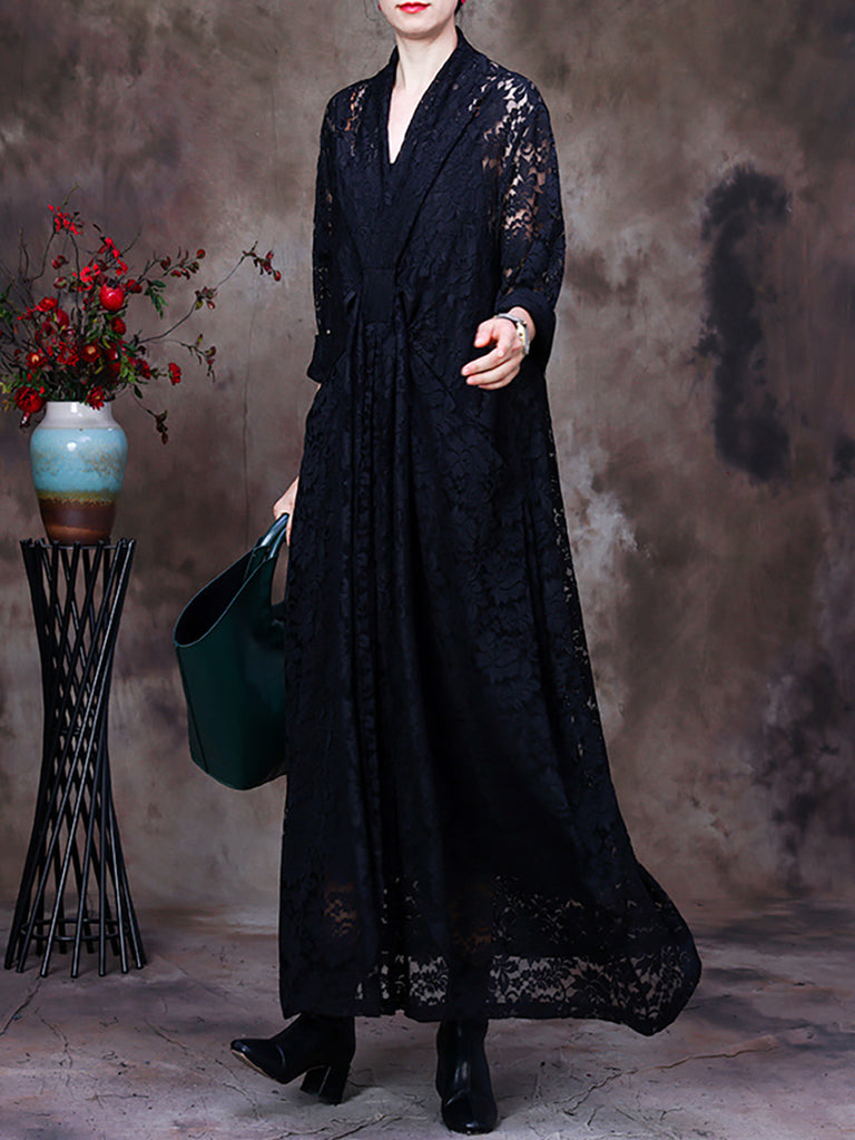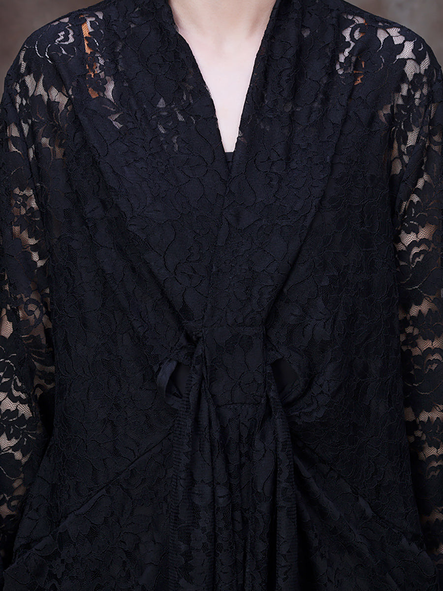 Plus-Size Women Lace V-Neck Belt Irregular Dress