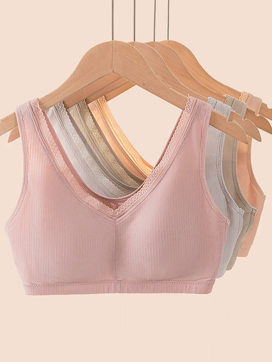 Women Artsy Pure Color One-piece Wireless Bra