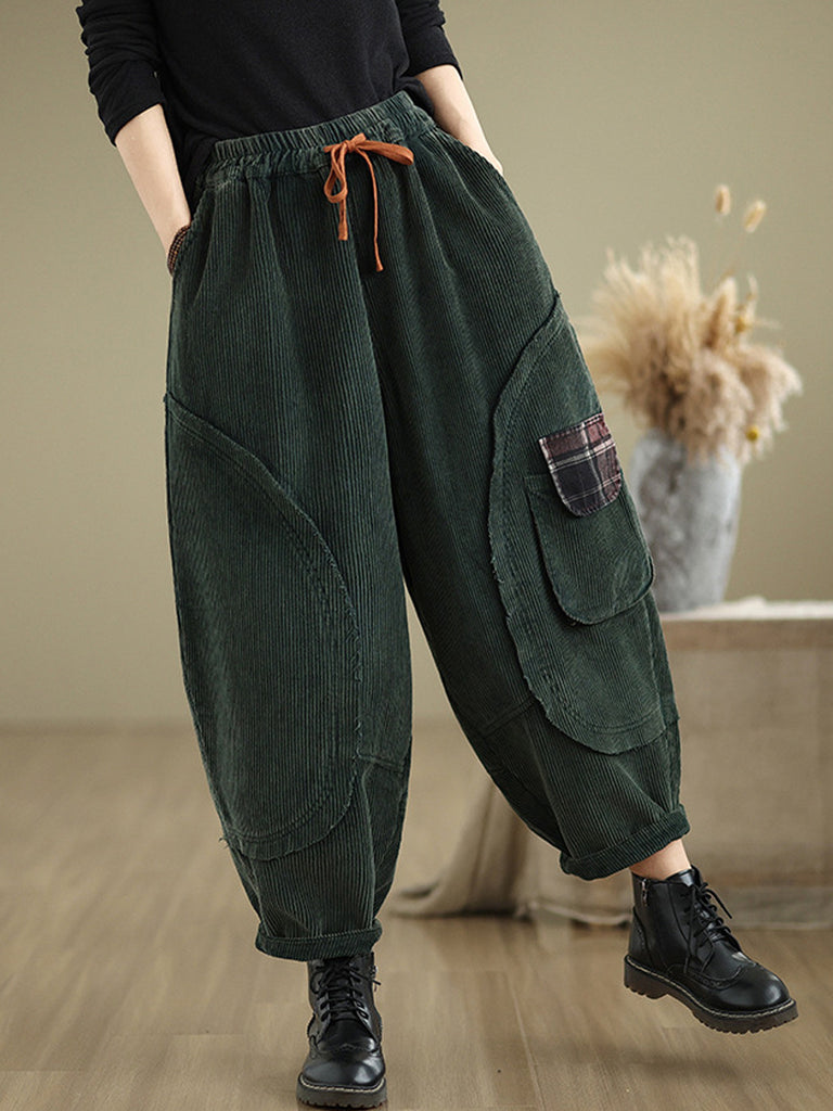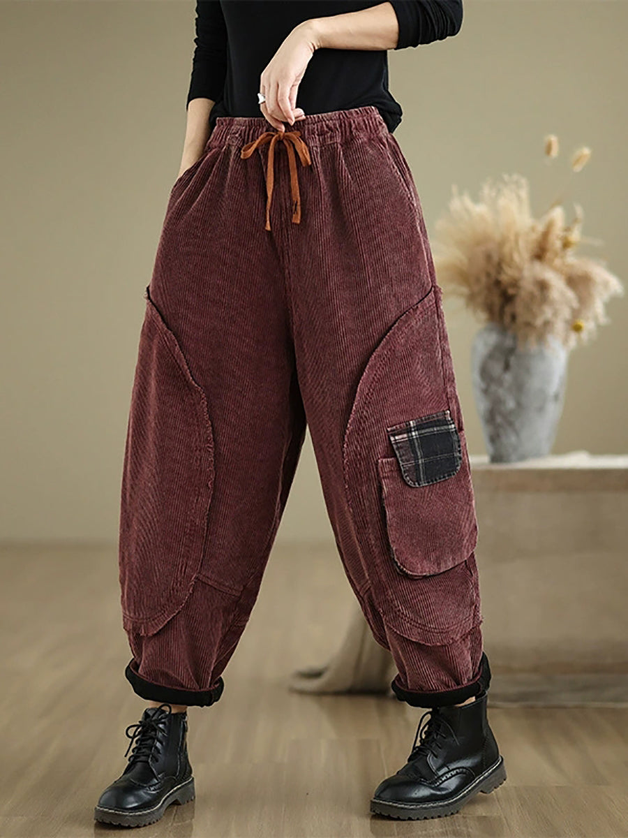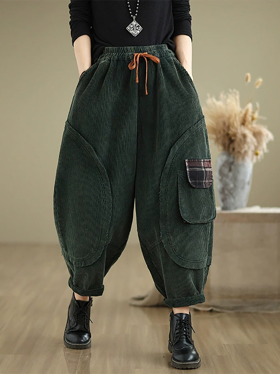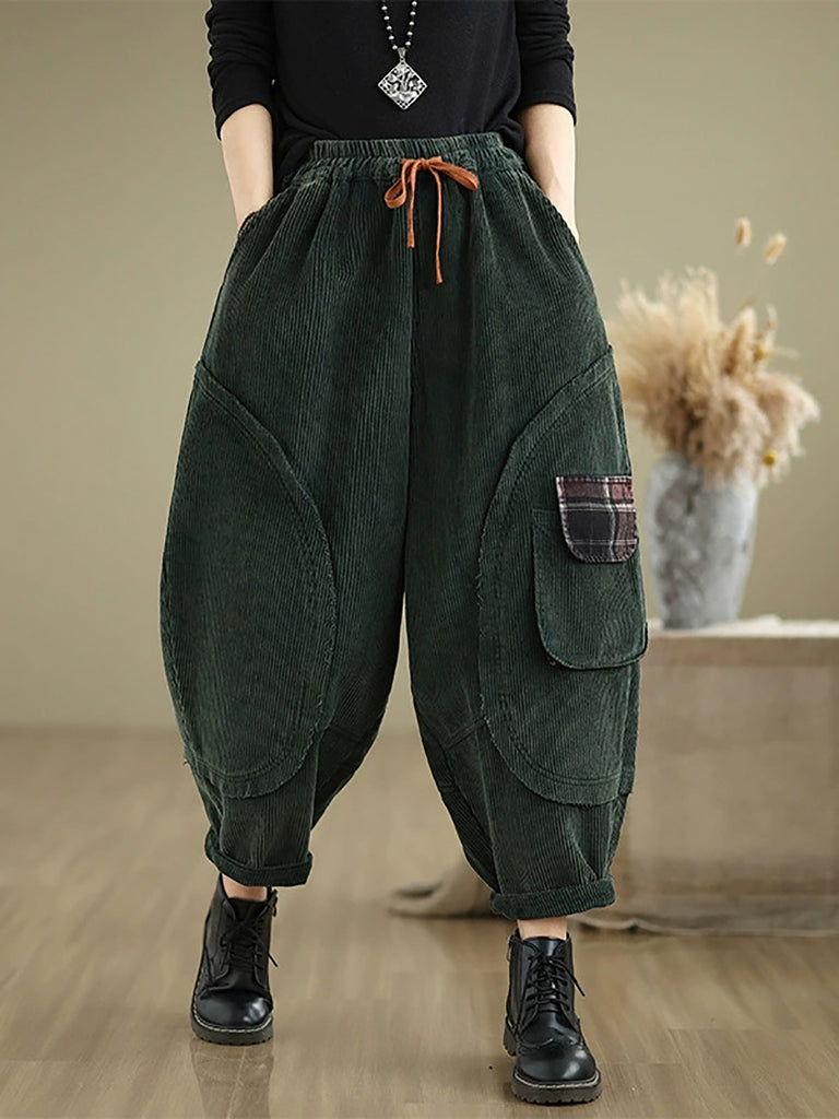 Women Autumn Retro Pure Color Corduroy Harem Pants