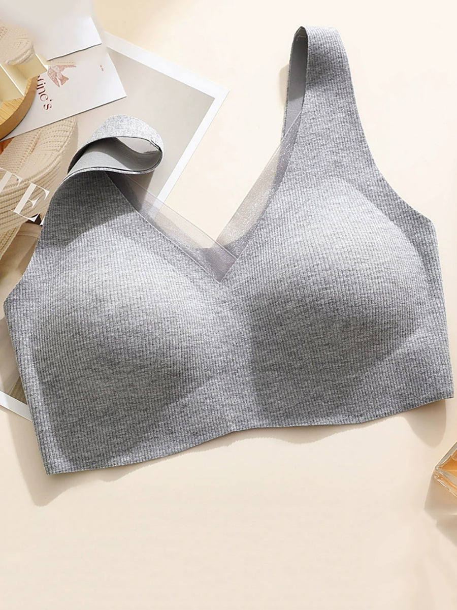 Women Casual Pure Color One-piece Wireless Bra