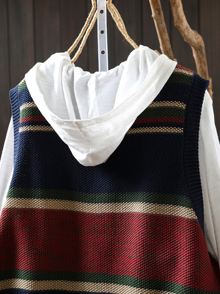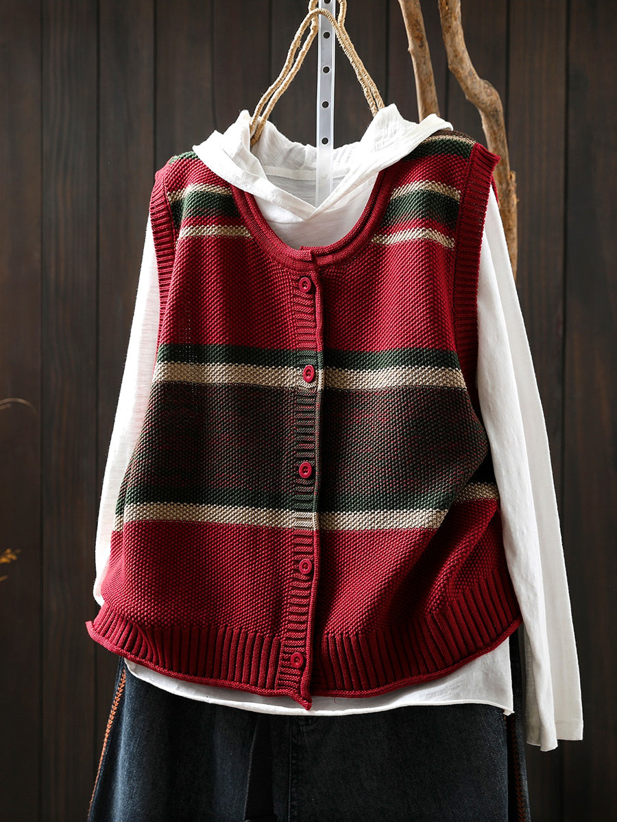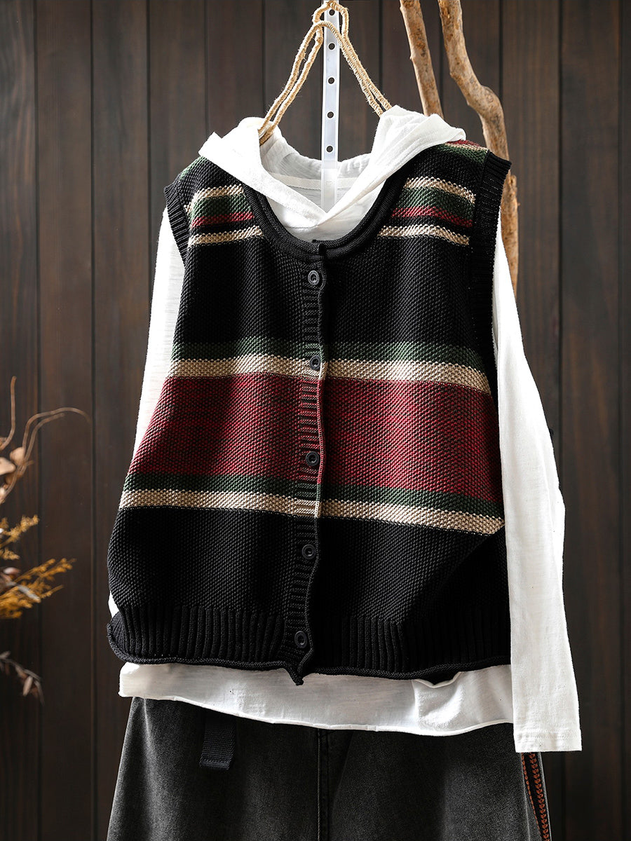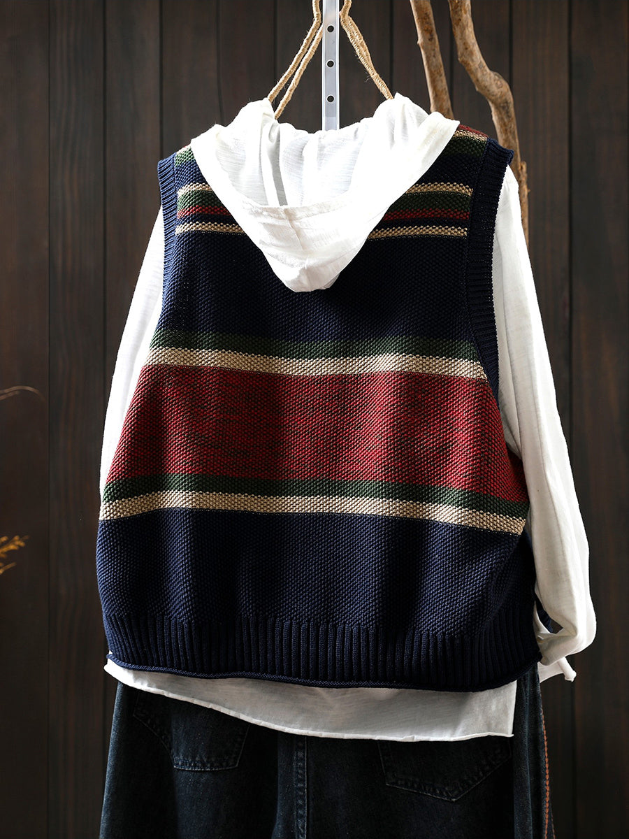Women Spring Artsy Colorblock O-Neck Knitted Vest