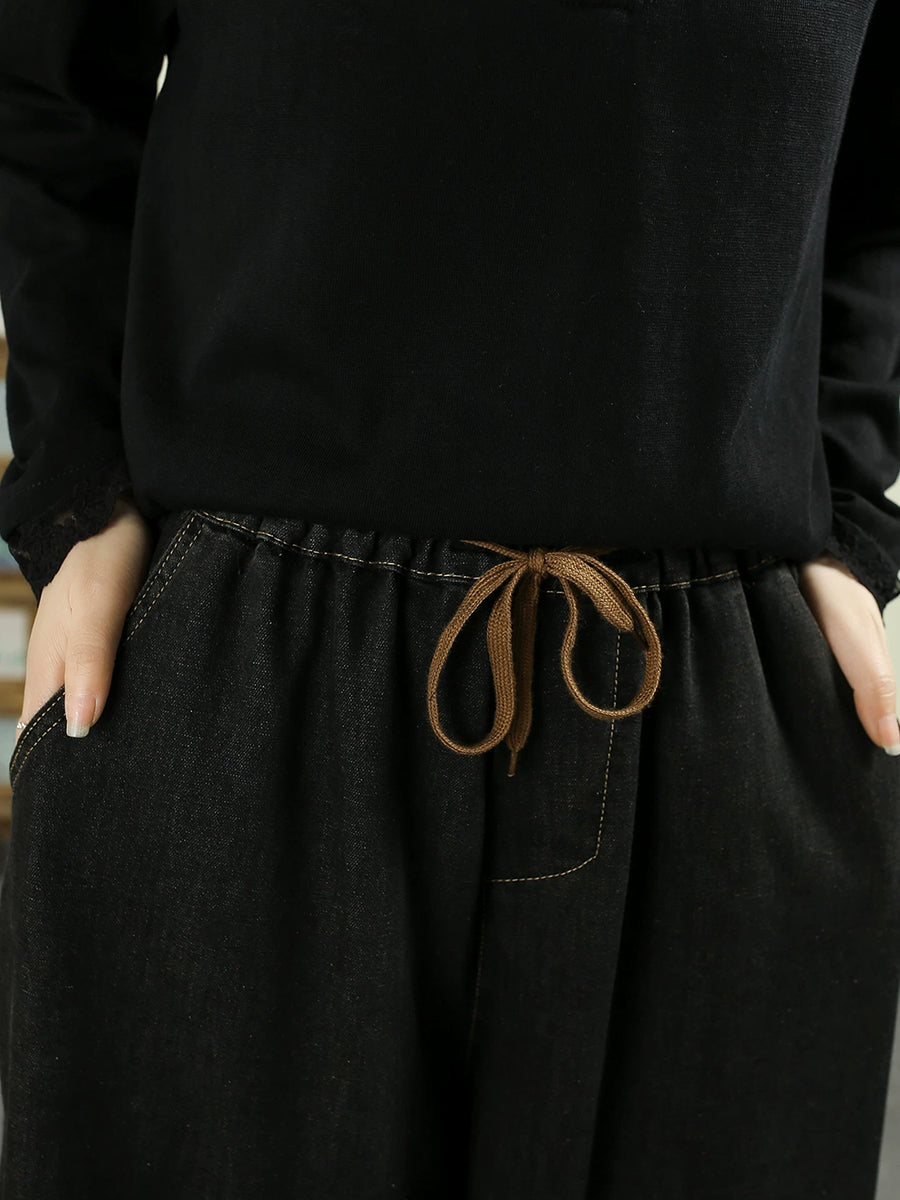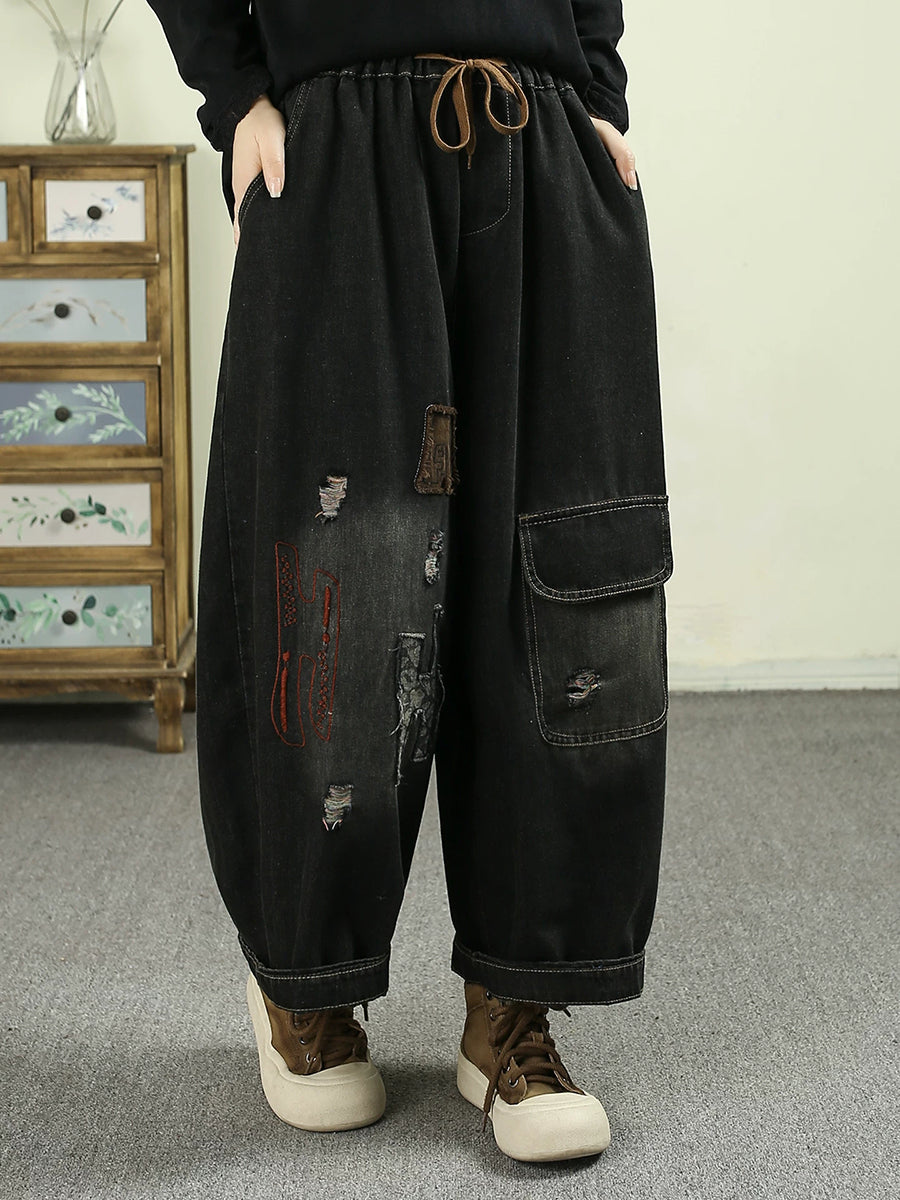 Women Spring Retro Denim Frayed Harem Pants
