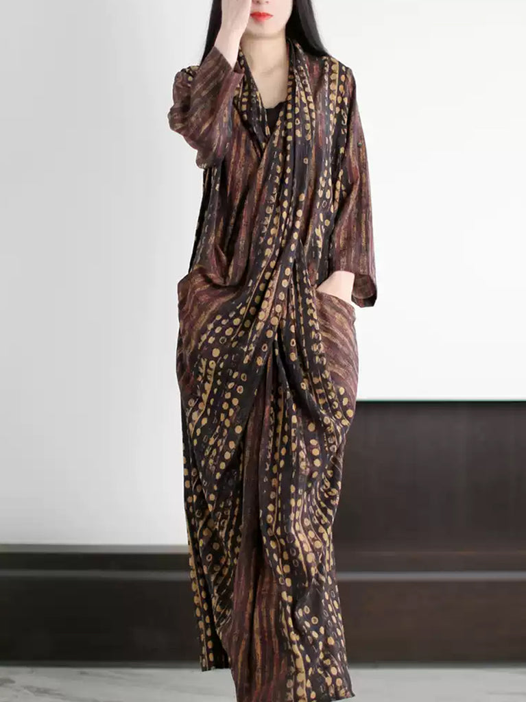 Women Spring Vintage Irregular Spliced Loose Dress
