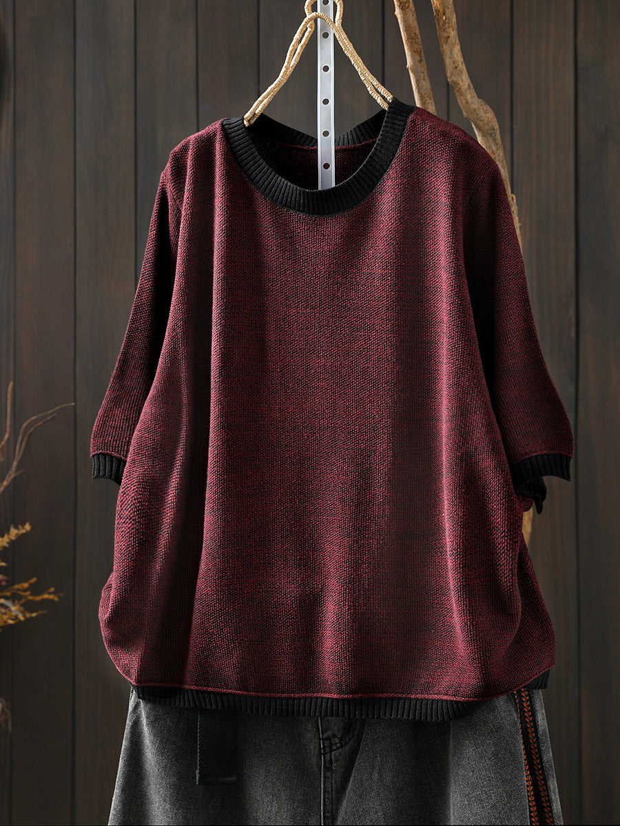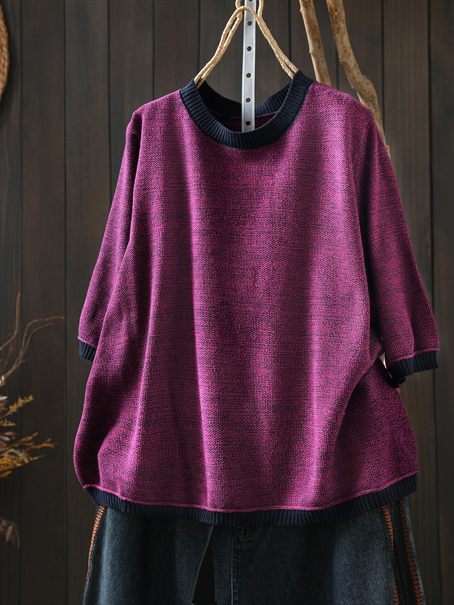 Women Summer Artsy Colorblock Cotton Plaid O-Neck Shirt