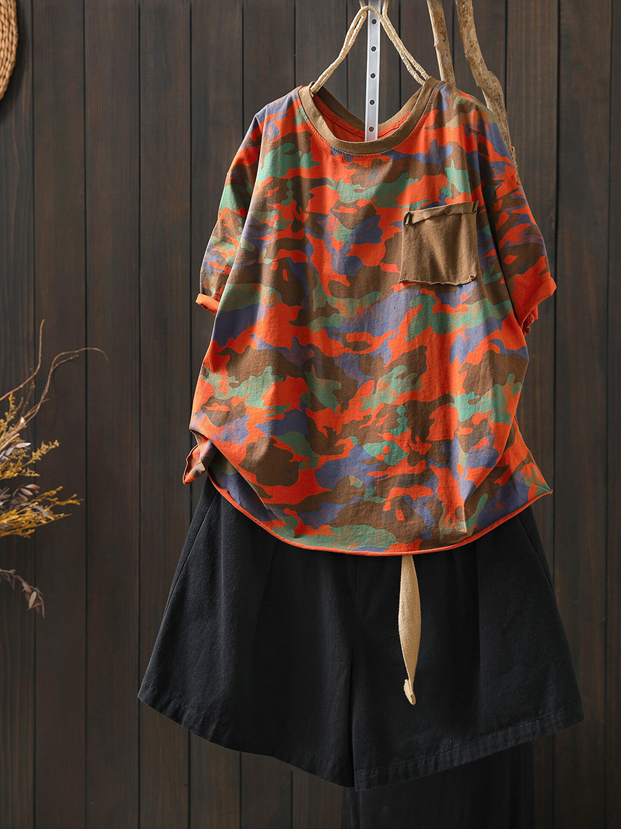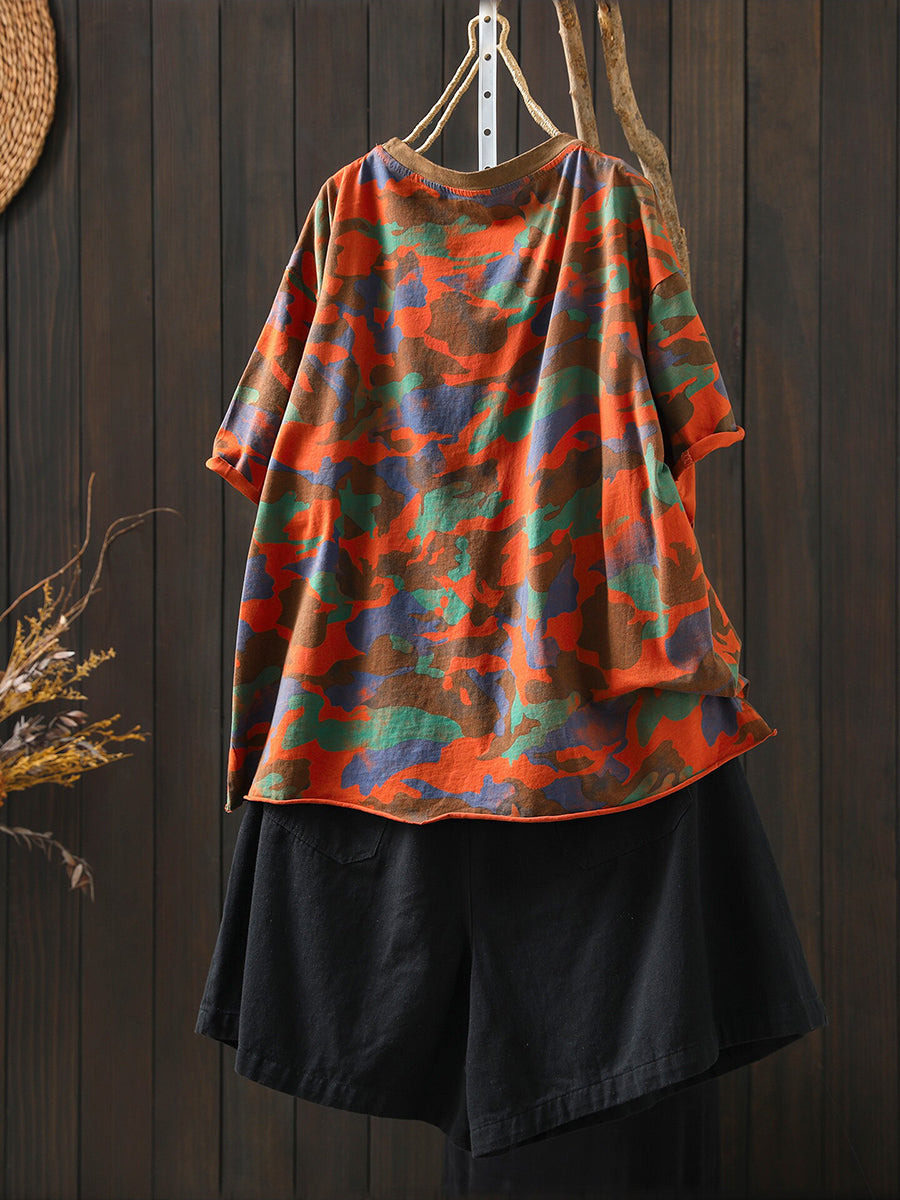 Women Summer Casual Camouflage O-Neck T-Shirt