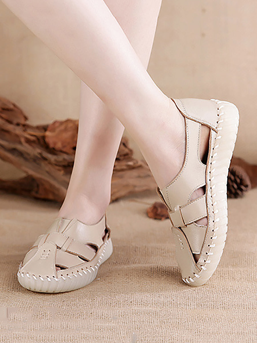 Women Summer Genuine Leather Spliced Flat Sandals