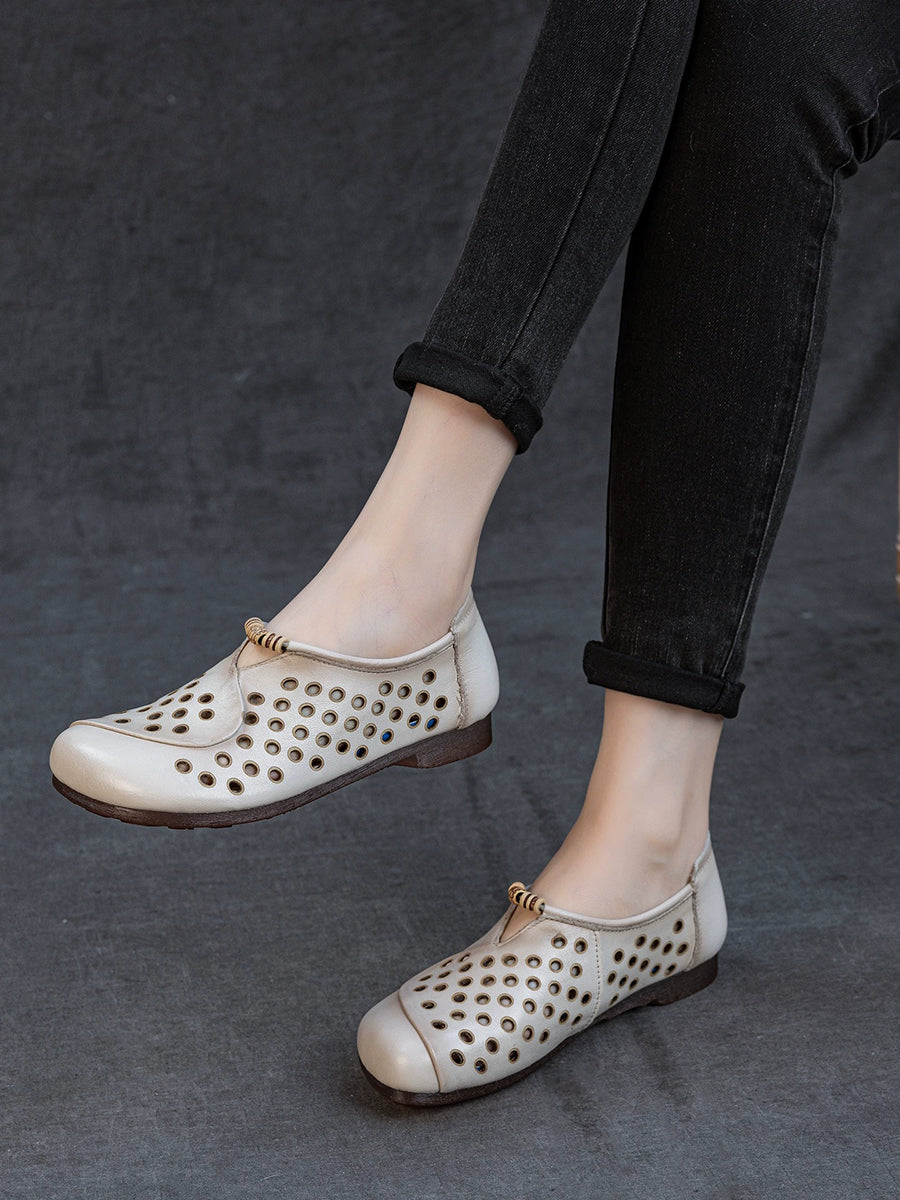 Women Summer Hollow Out Genuine Leather Shoes