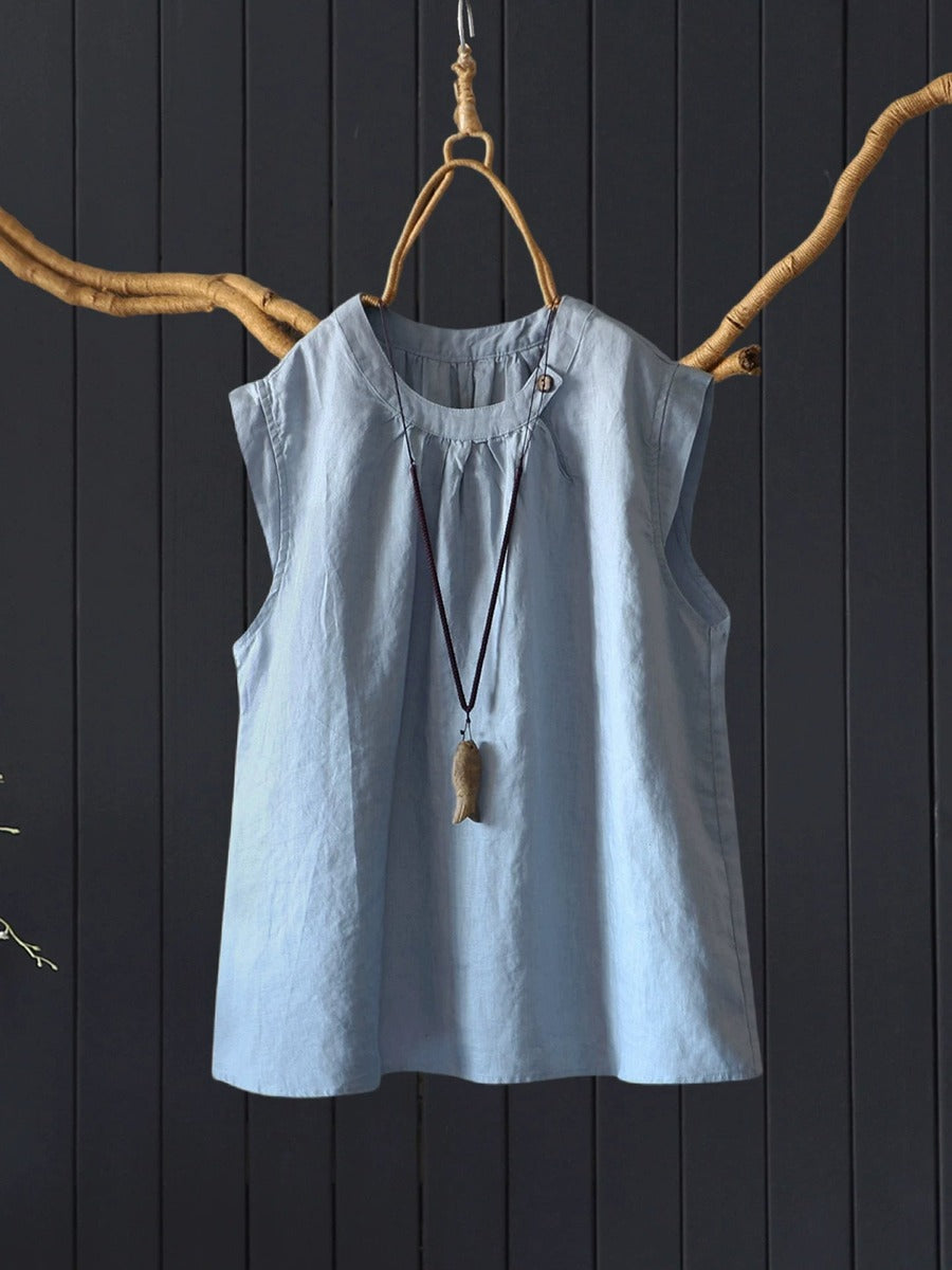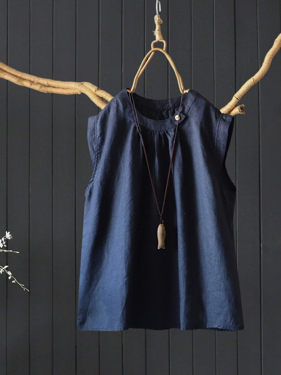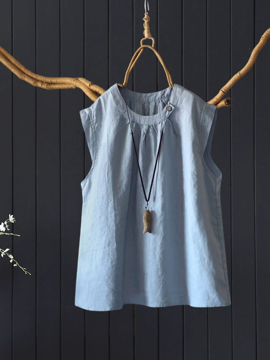 Women Summer Vintage 100% Linen Sleeveless Blouse