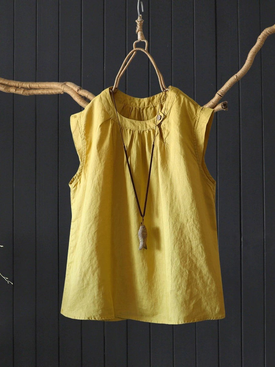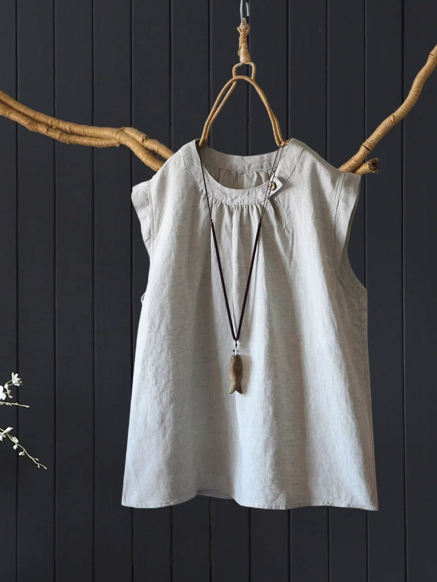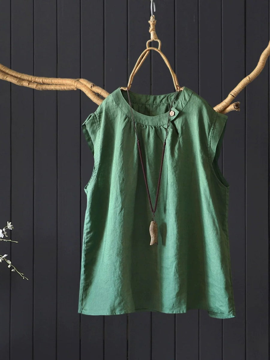 Women Summer Vintage 100% Linen Sleeveless Blouse