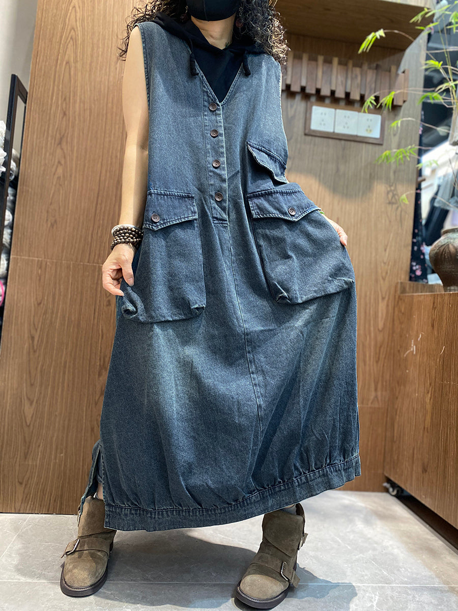 Women Summer Vintage Denim Vest Dress