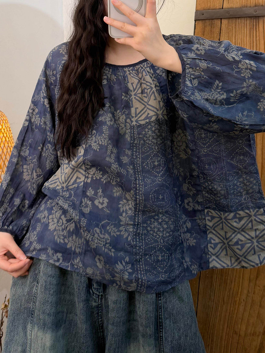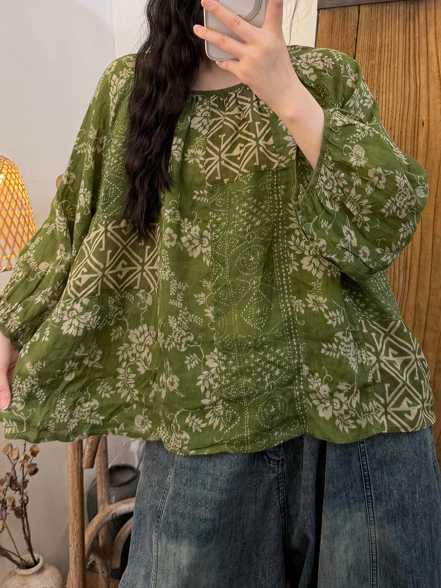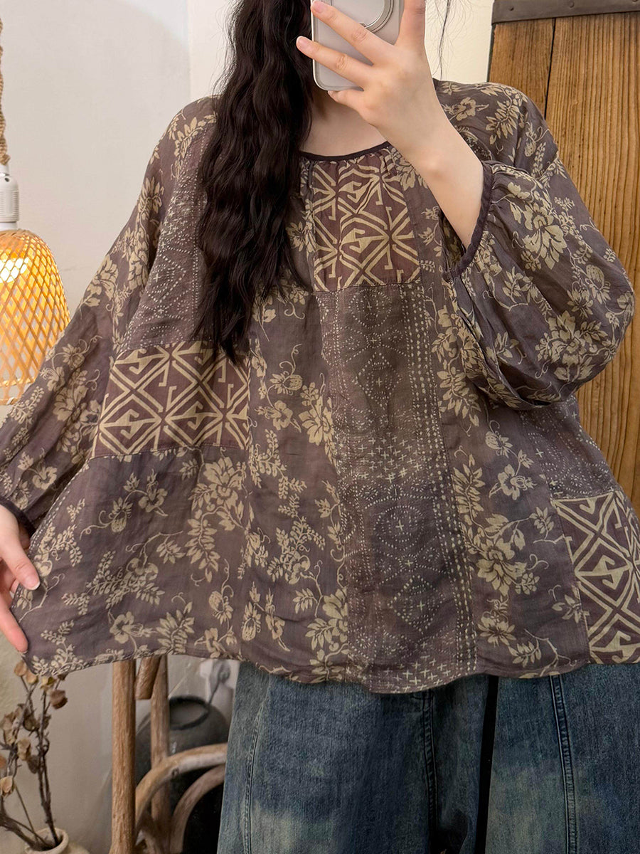 Women Summer Vintage Patchwork O-Neck Blouse